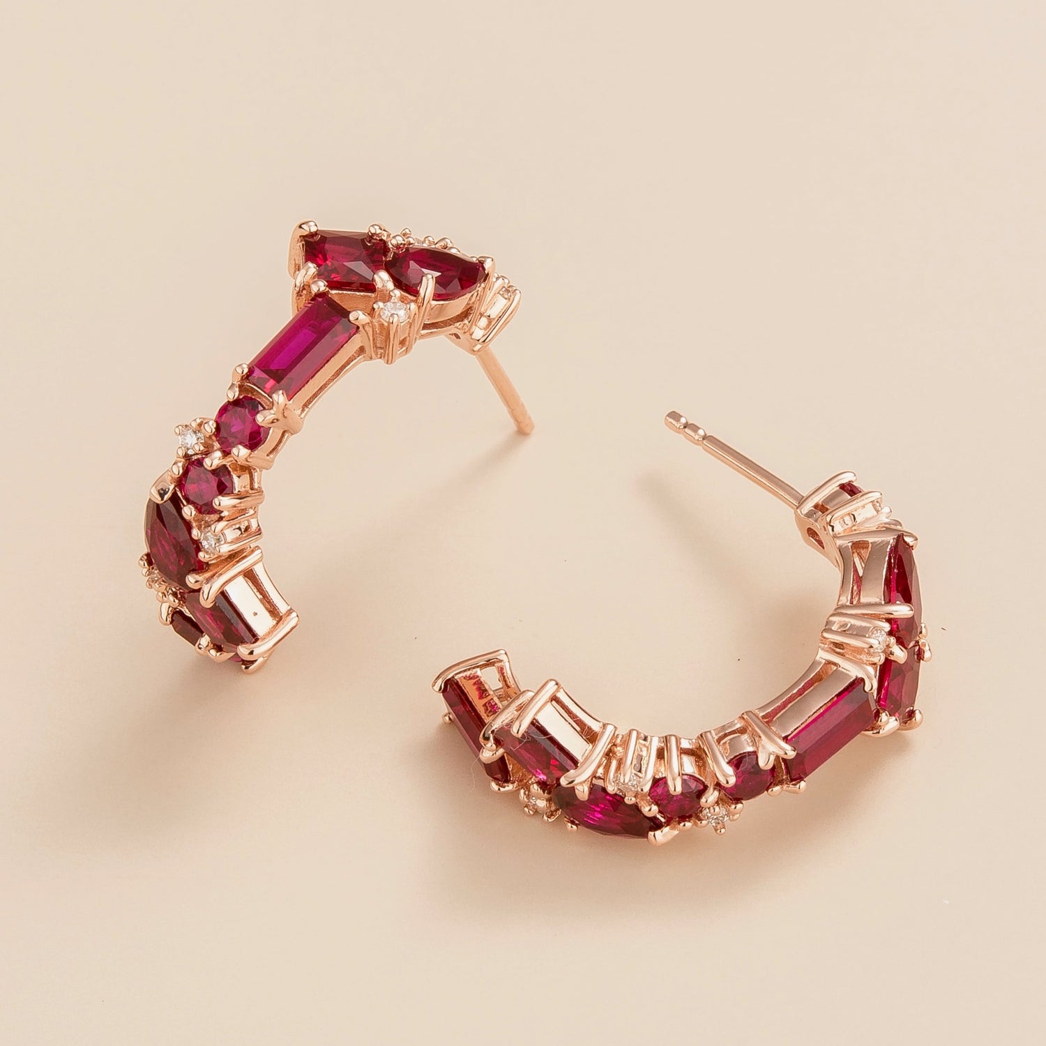 Ruby & Diamond Medium Hoop Lanna Rose Gold Earrings