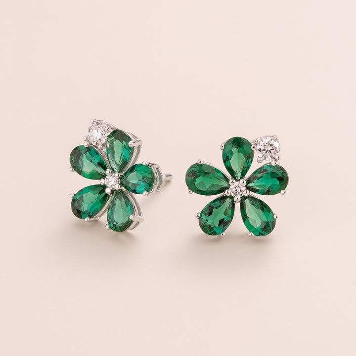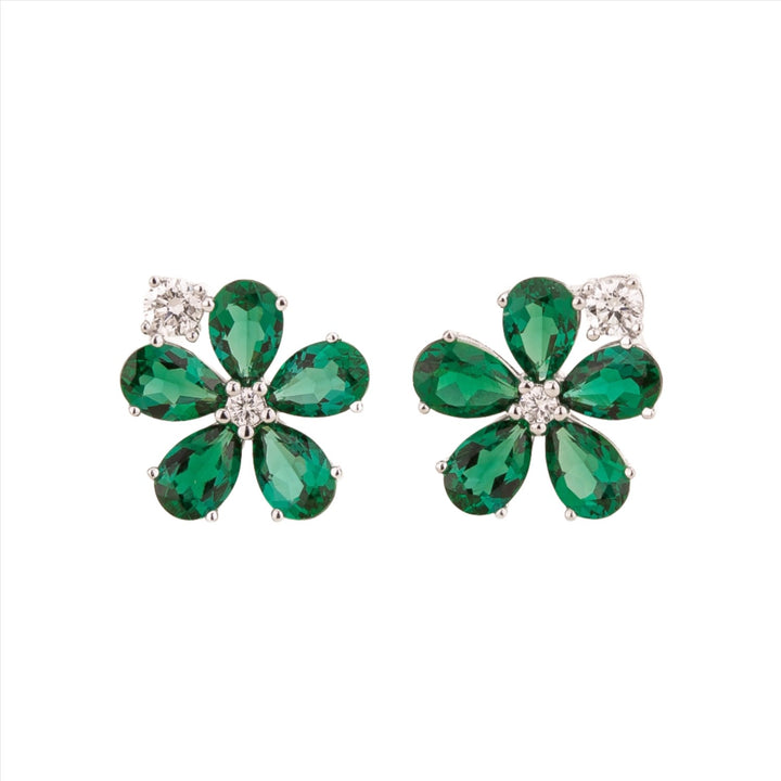 Florea White Gold Earrings In Diamonds & Emeralds