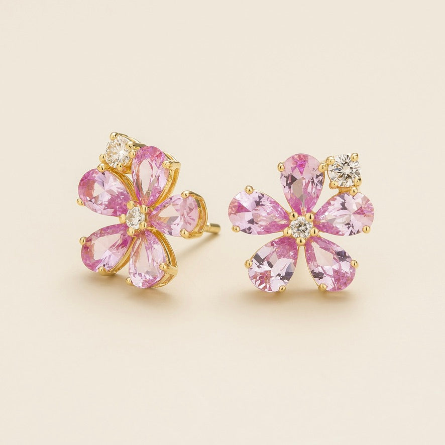 Florea Gold Earrings In Pink Sapphire & Diamond