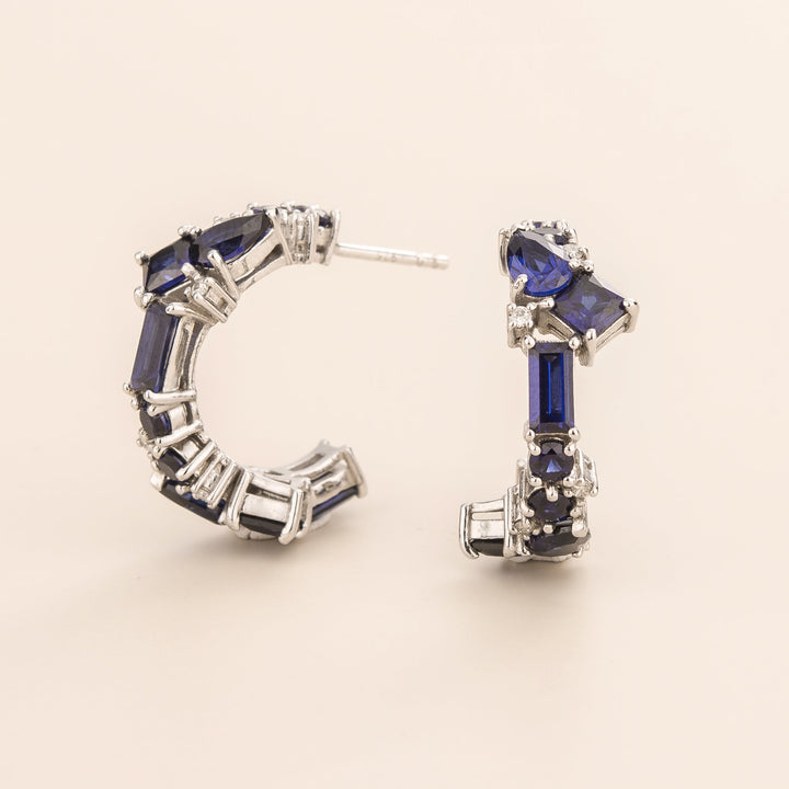 Lanna White Gold Blue Sapphire And Diamond Medium Hoop Earrings
