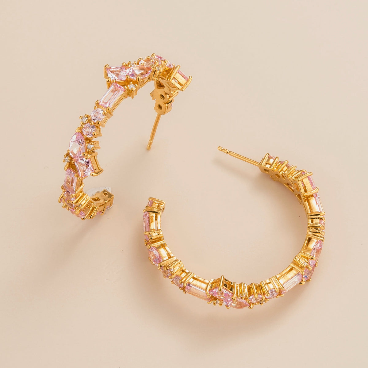 Pink Sapphire & Diamond Lanna Hoop Gold Earrings