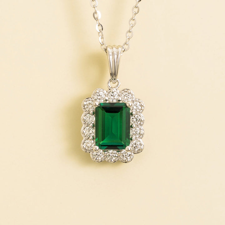 This Verda Pendant Necklace by Juvetti is a stunning and elegant piece. The pendant features a beautiful emerald at its center, surrounded by sparkling diamonds. The design is simple yet luxurious, making it a perfect everyday accessory. The adjustable chain adds versatility, allowing you to wear it at different lengths to complement various necklines.