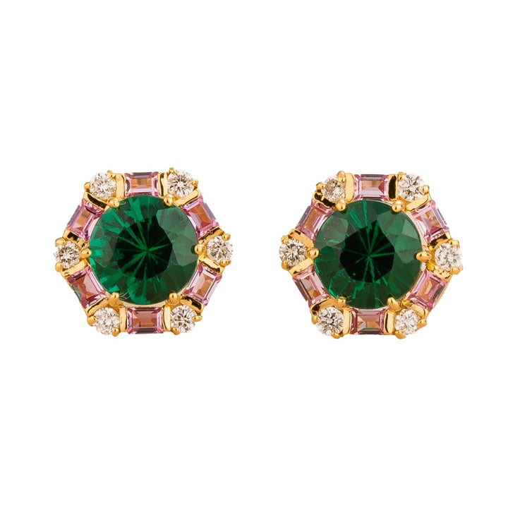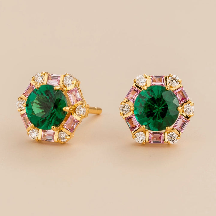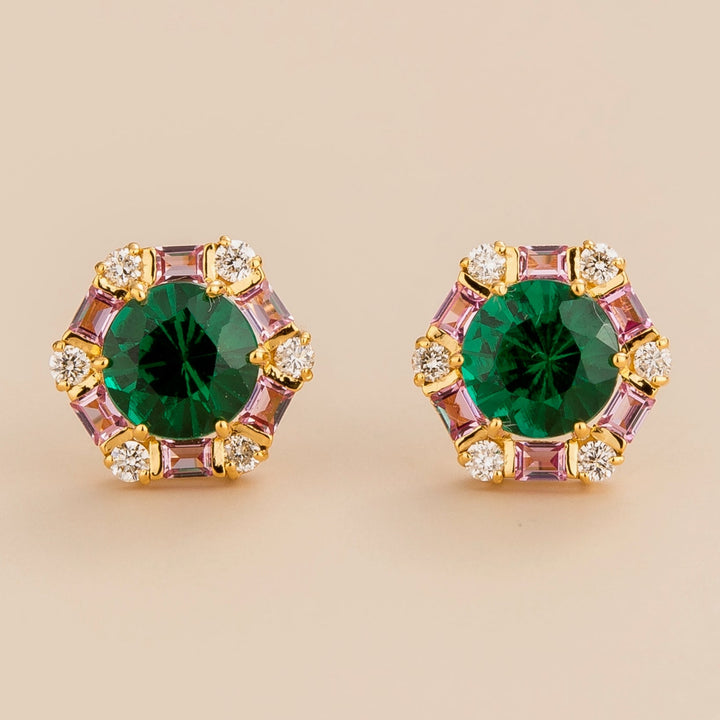 Melba Gold Earrings Emerald, Pink Sapphire & Diamond