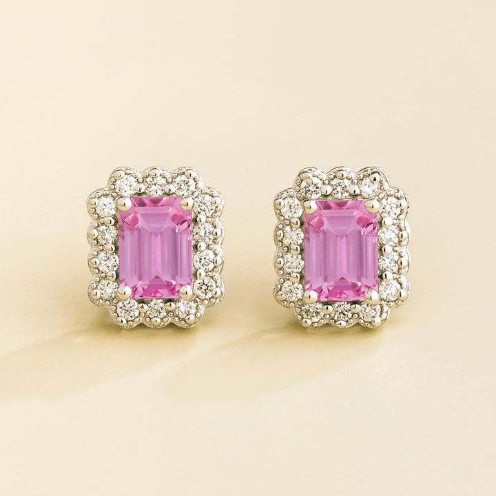 Verda White Gold Earrings In Pink Sapphire & Diamond