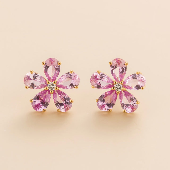 Florea Gold Earrings In Pink Sapphire And Diamond