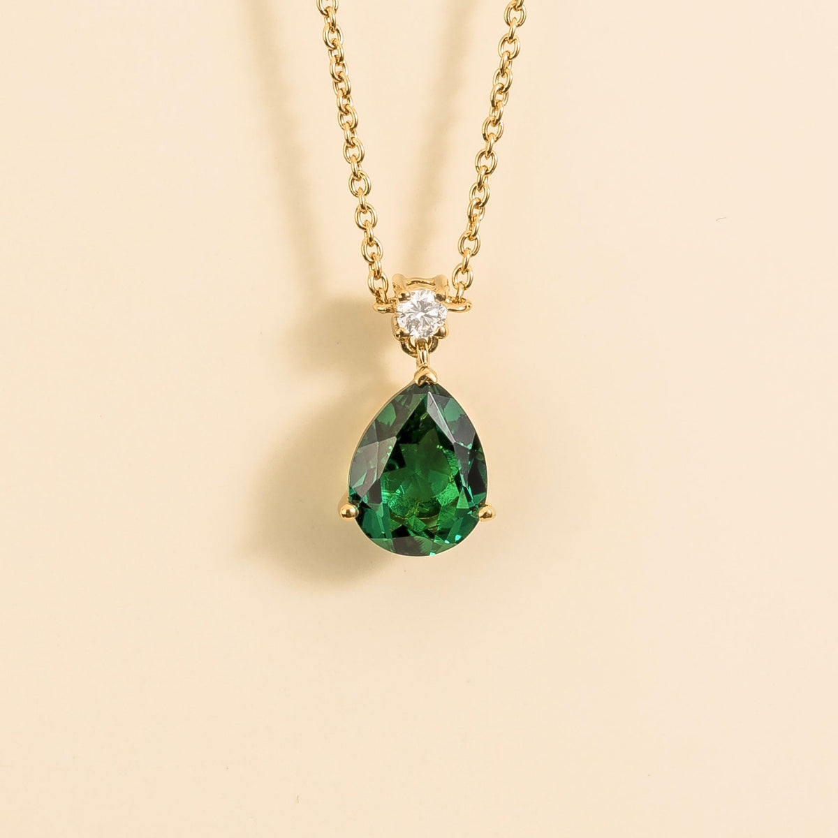 Ori Medium Pendant Necklace In Emerald & Diamond Set In Gold