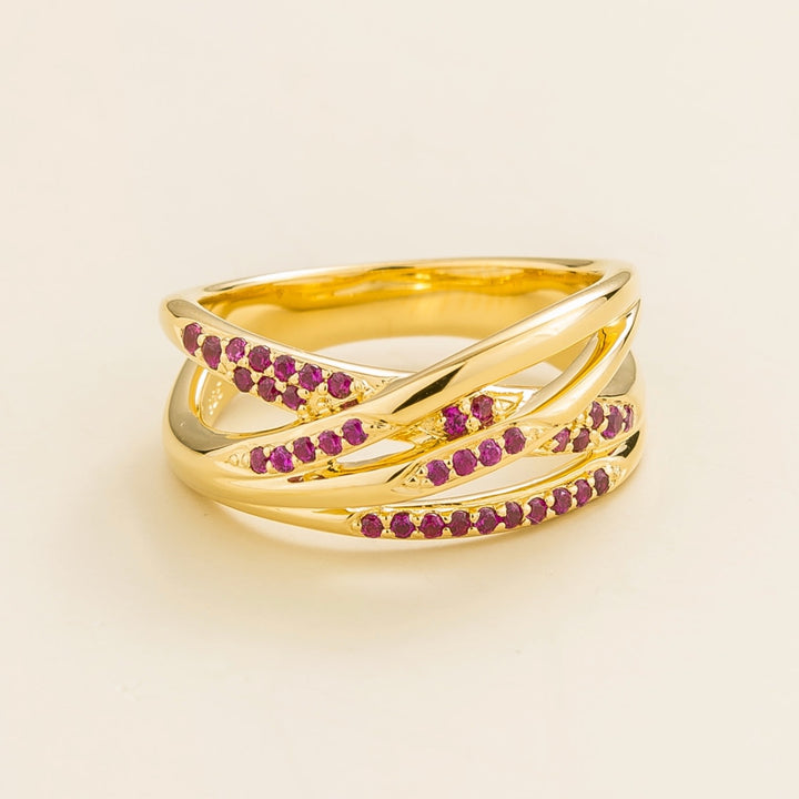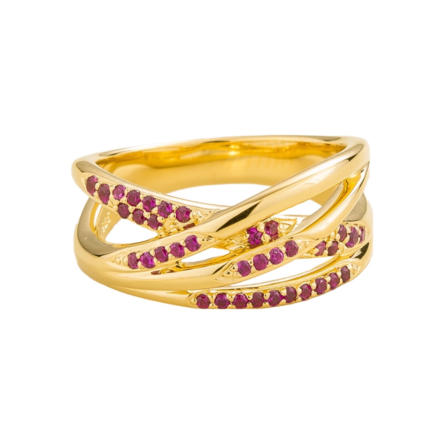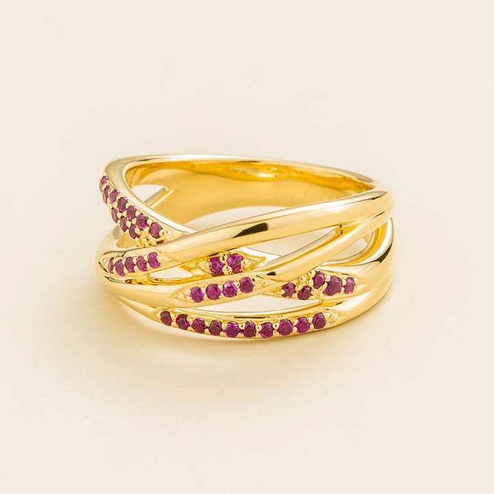 The Val Ring by Juvetti is a breathtaking and timeless wrap ring. It is set with sparkling Ruby gemstones in gold vermeil. This piece is perfect for adding endless elegance and glamour to any occasion and is designed to preserve its original brilliance over time.