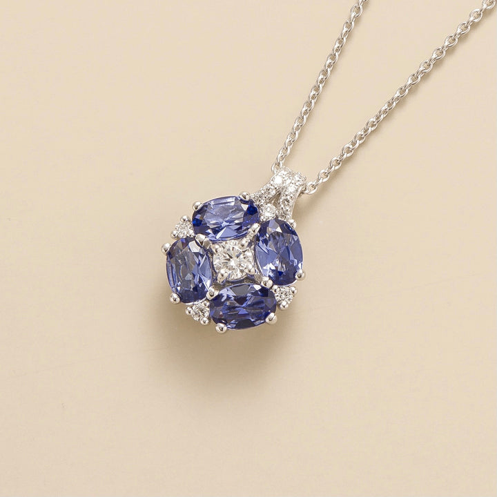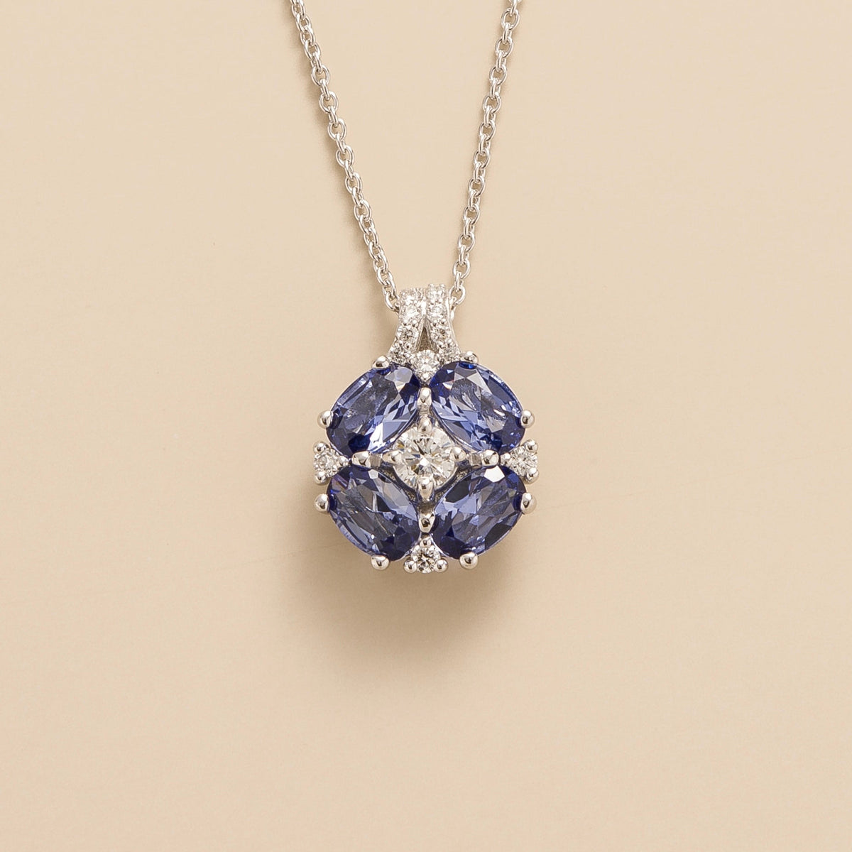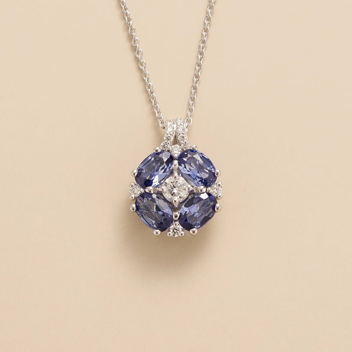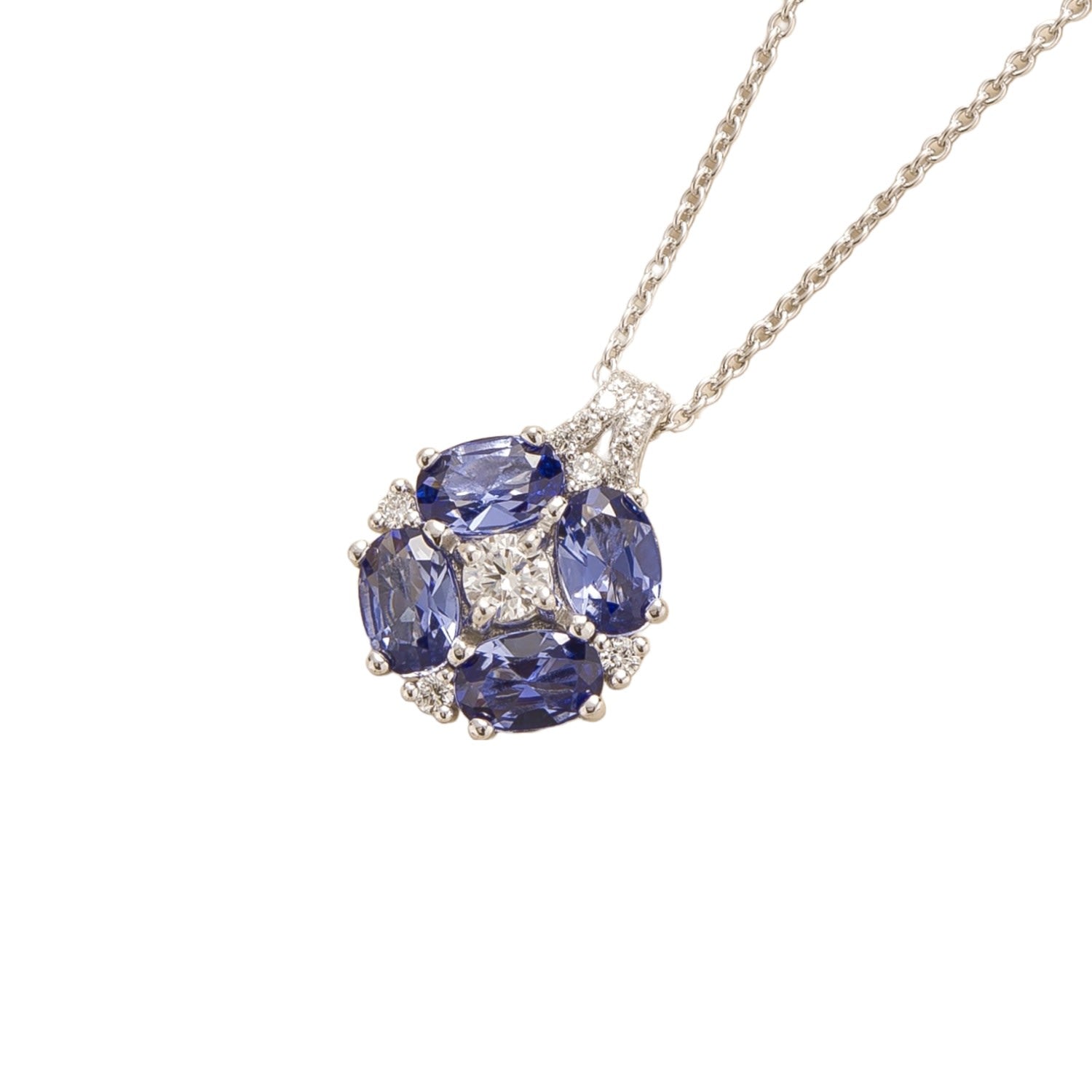 Pristi White Gold Necklace Ceylon Blue Sapphires & Diamonds
