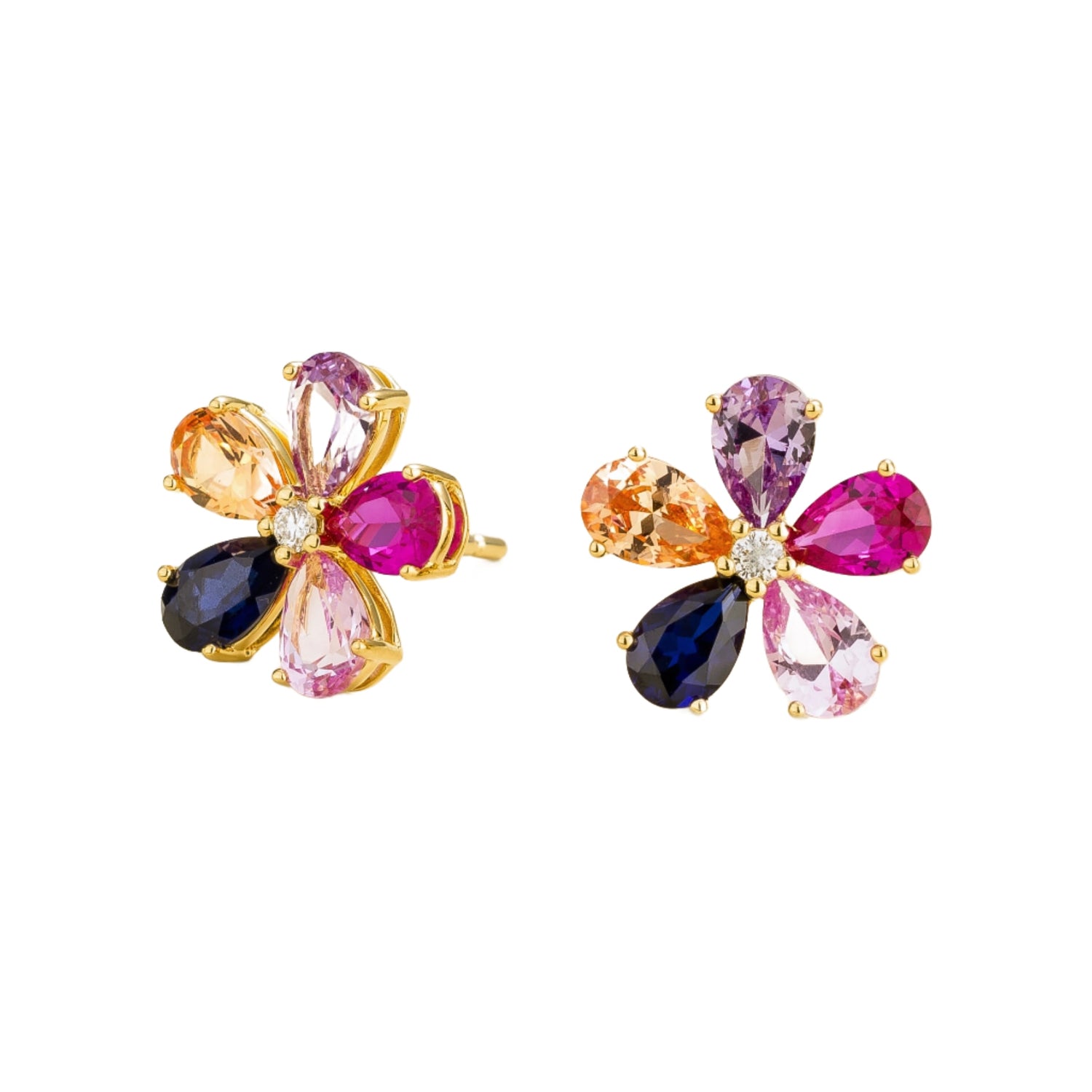 Florea Gold Earrings Diamonds, Blue Sapphire, Pink Sapphire & Champagne Sapphire