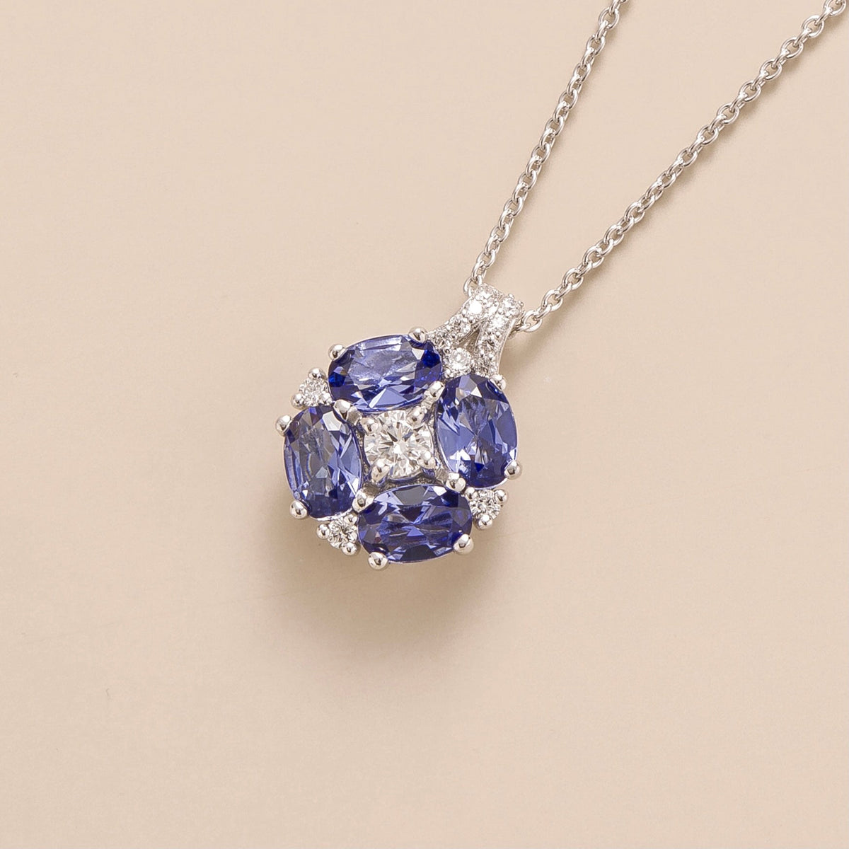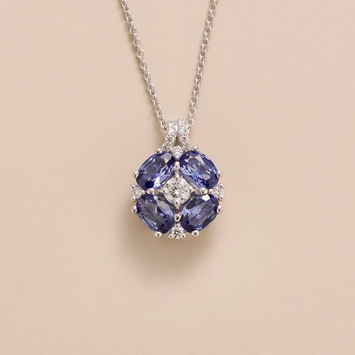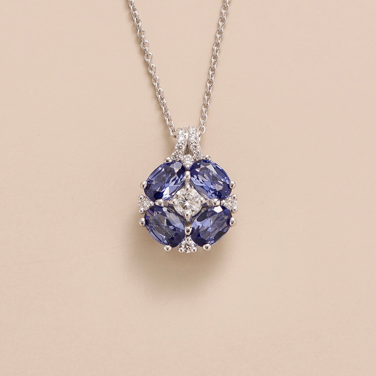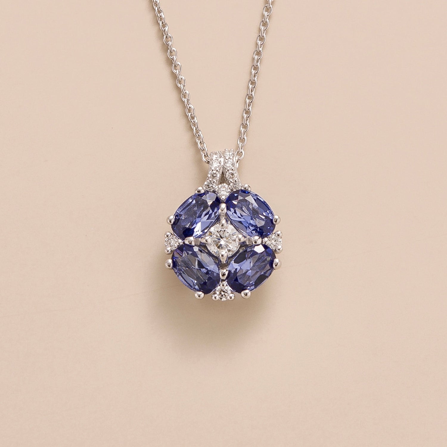 Pristi White Gold Necklace With Diamonds & Ceylon Blue Sapphire