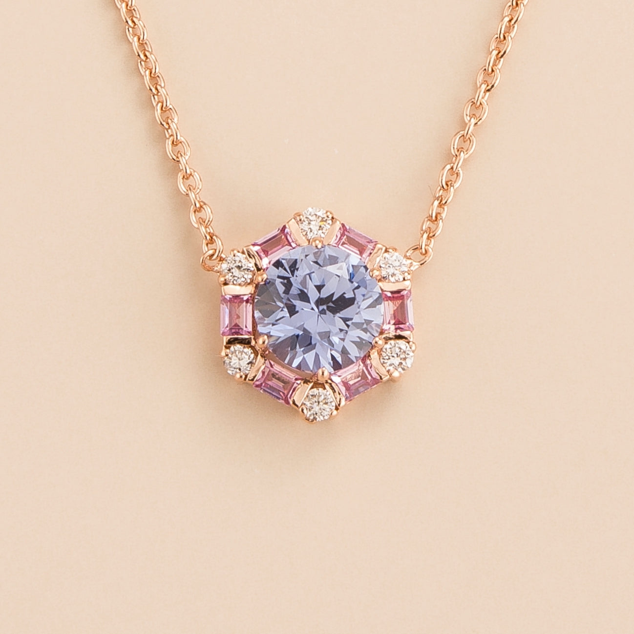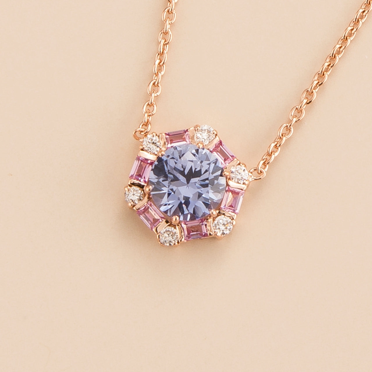 Melba Rose Gold Necklace Ceylon Blue Sapphire, Pink Sapphire & Diamond