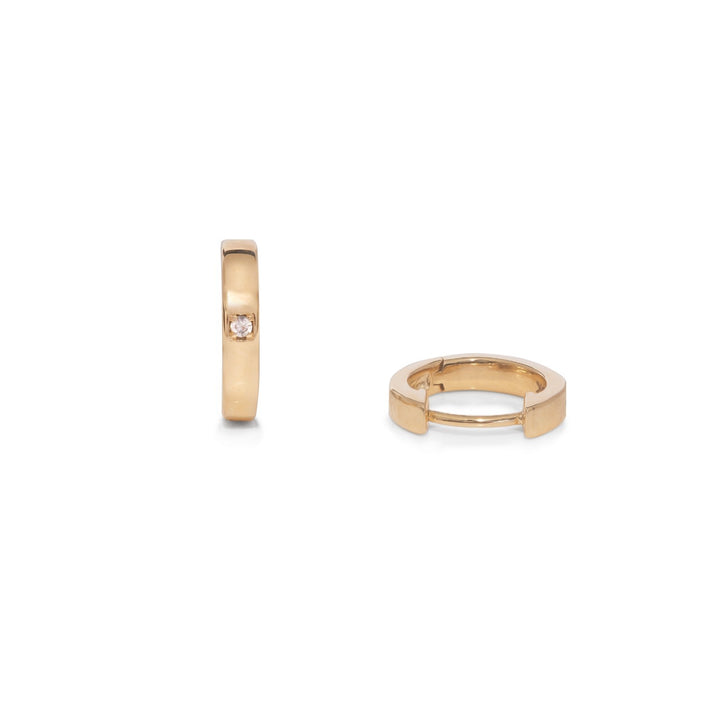 This single huggie hoop earring is made from solid 9-carat yellow gold and is studded with a genuine diamond.