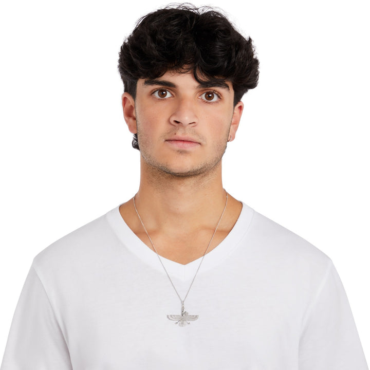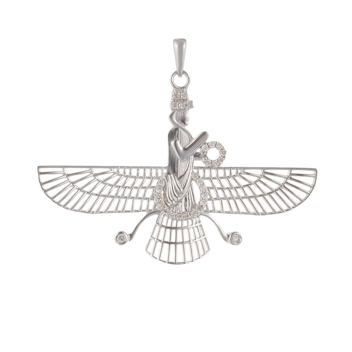 The Wings Of An Angel Silver & Diamonds For Women necklace by Kaizarin is a stunning and one-of-a-kind piece. The pendant depicts an ancient god or guardian angel, a symbol of divine protection. The delicate setting of diamonds within the figure showcases the artisan's skill, making this a perfect and meaningful gift for a man or woman.
