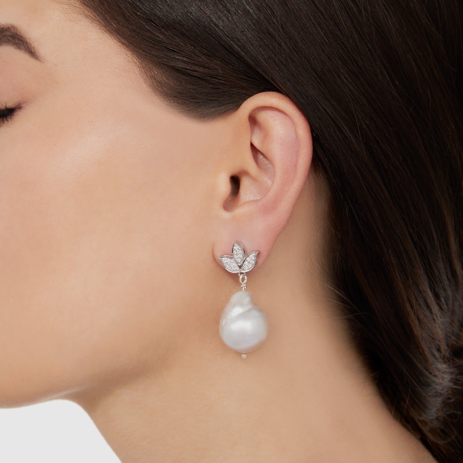 South Sea Pearl Earrings & Lotus Diamond Earrings In White Gold
