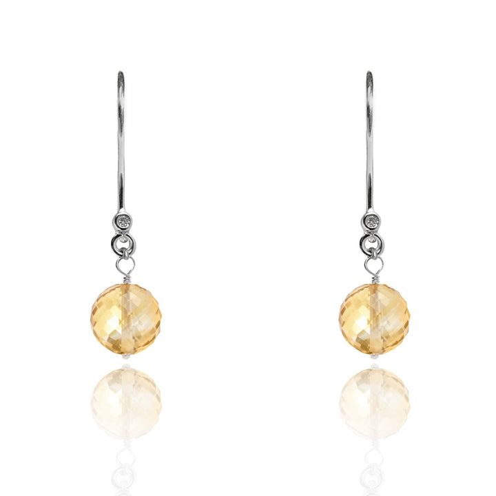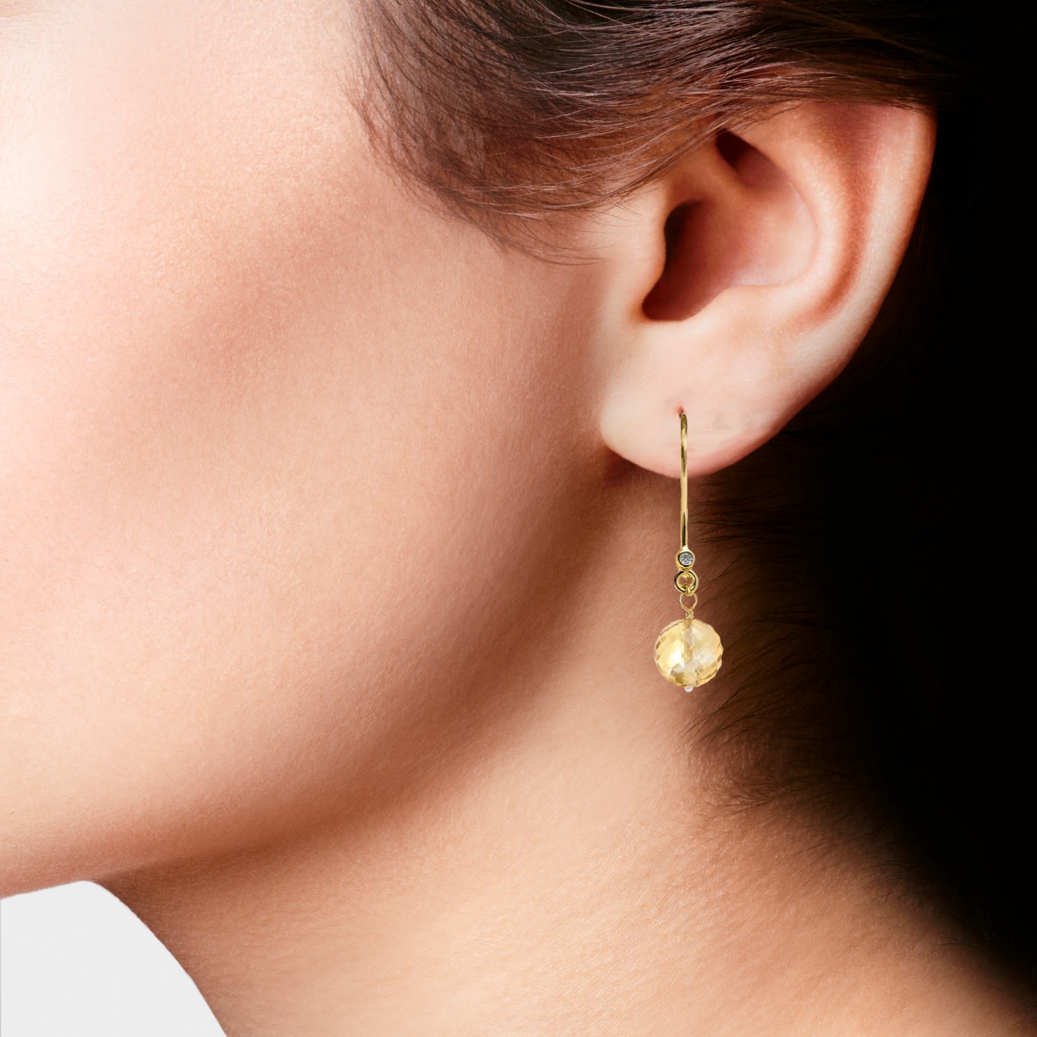 These Yellow Topaz Dangly Earrings November Birthstone by Kaizarin celebrate the golden warmth of topaz, a stone long associated with wisdom and longevity. Their elegant drop design is enhanced by the sparkle of a single diamond, creating an eternally stylish look. Designed in London, they bring a sense of sophistication and poise, making them a versatile addition for both everyday wear and milestone occasions.