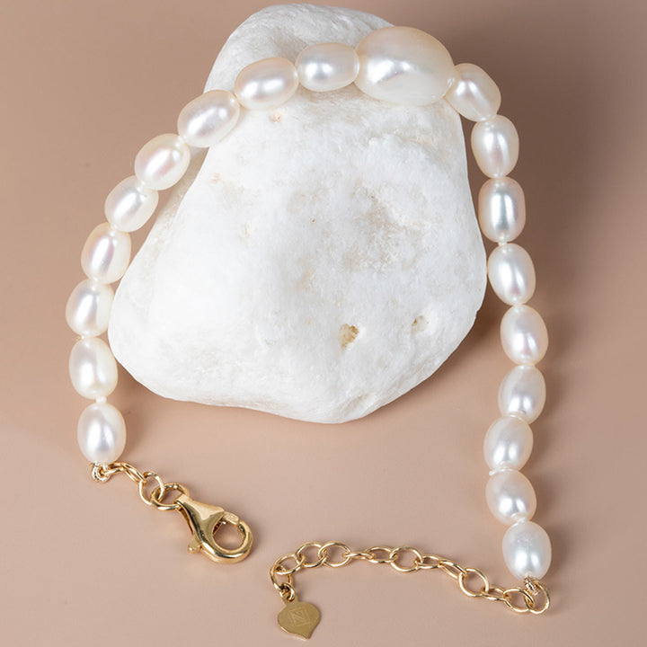 This Mila Pearl Bracelet by Kajal Naina inspires a timeless connection. With its delicate design and natural pearls, this piece symbolizes the enduring bonds that inspire and delight. The bracelet's versatile and classic aesthetic makes it a beautiful addition to any collection, perfect for celebrating life's meaningful moments and cherishing a piece of jewelry that is as awesome as you are.