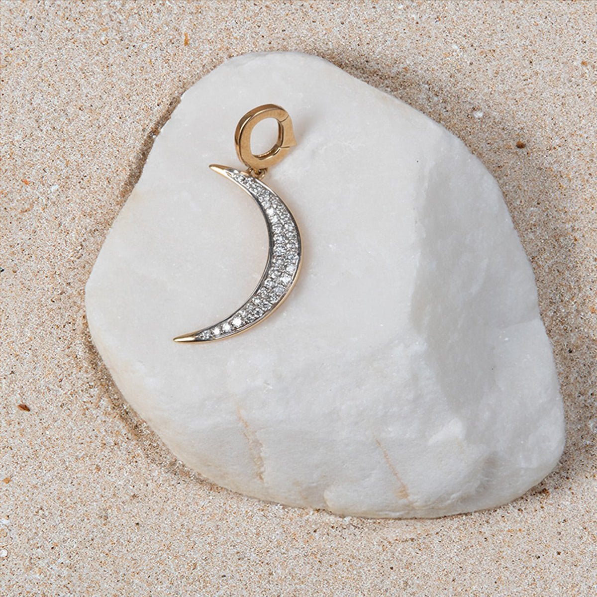 This charm is handcrafted from solid gold with natural diamonds and features a moon motif.