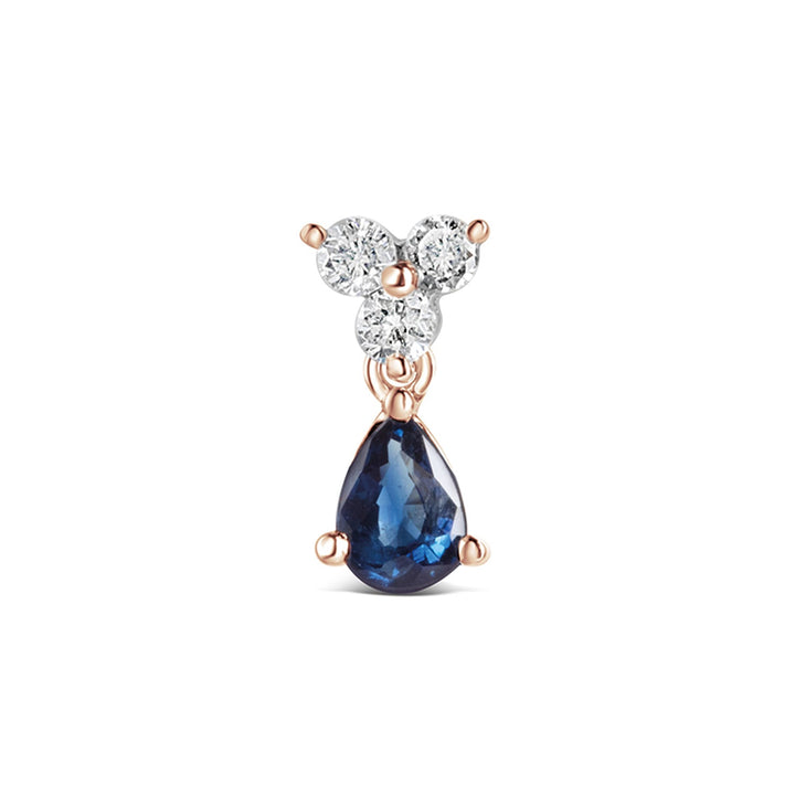 This single dangler earring is crafted from a choice of white gold, rose gold, or yellow gold and is set with blue sapphires and diamonds. It is available in regular or large sizes.