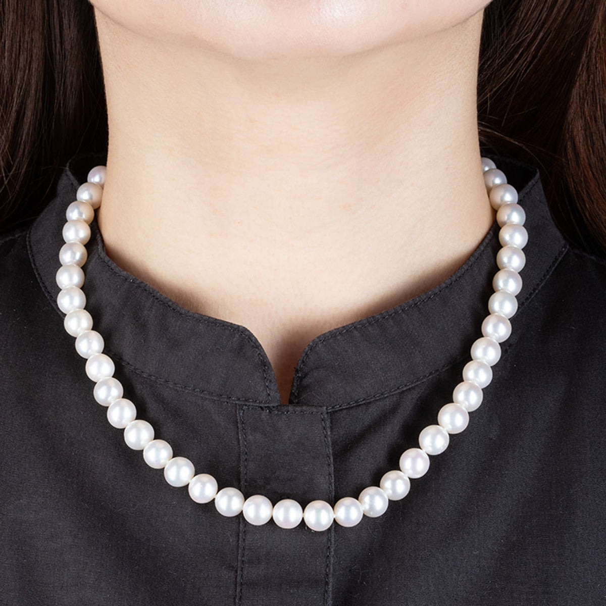 This Jackie Pearl Necklace by Kajal Naina is a tribute to the timeless style of Jackie O. As Jackie herself said, "Pearls are always appropriate," and this single-layered freshwater pearl necklace is proof. Each precious pearl is hand-selected and individually knotted on twin silk, ensuring the pearls never scratch and protecting against accidental breakage. This necklace is an essential piece for every lady, perfect for any occasion where elegance is a must.