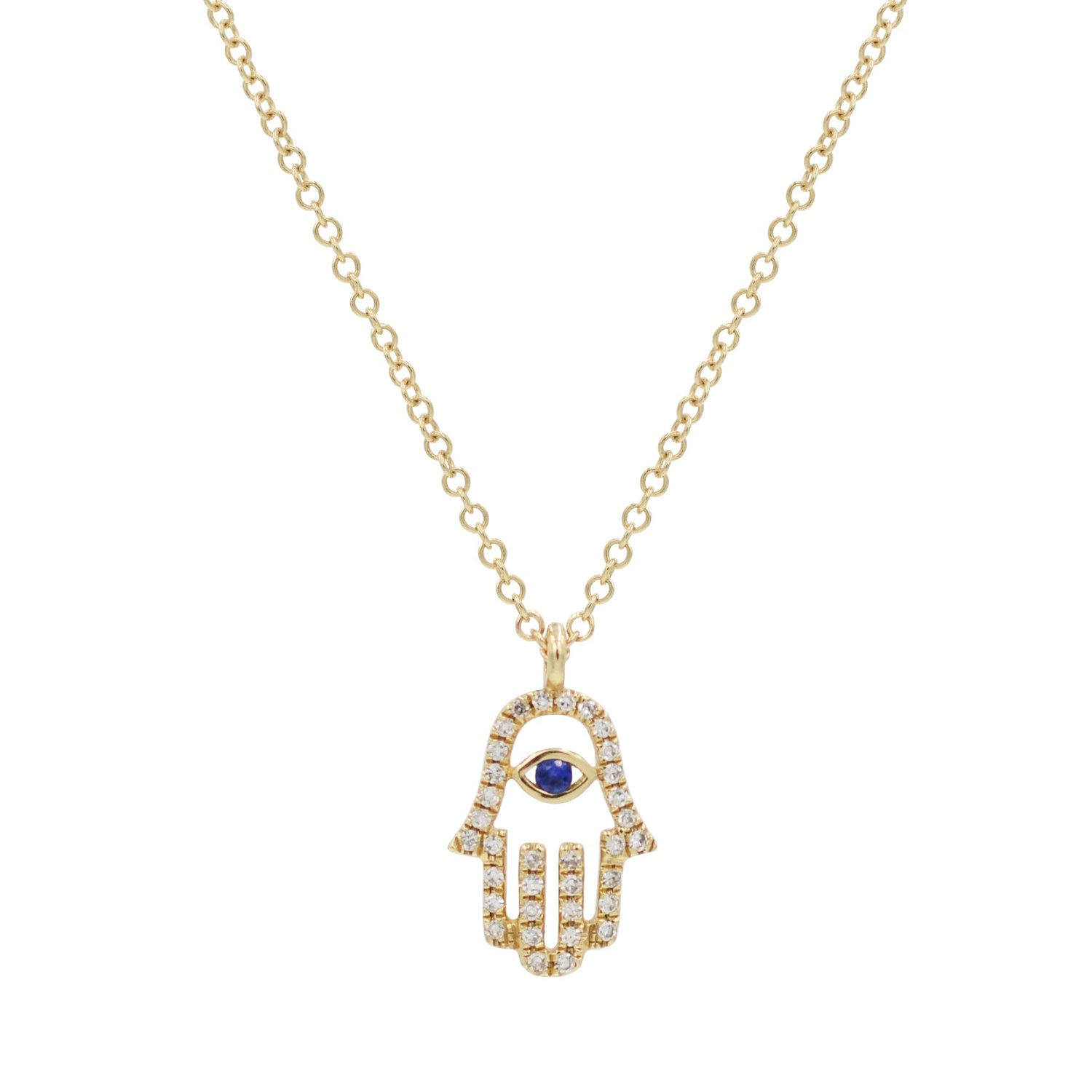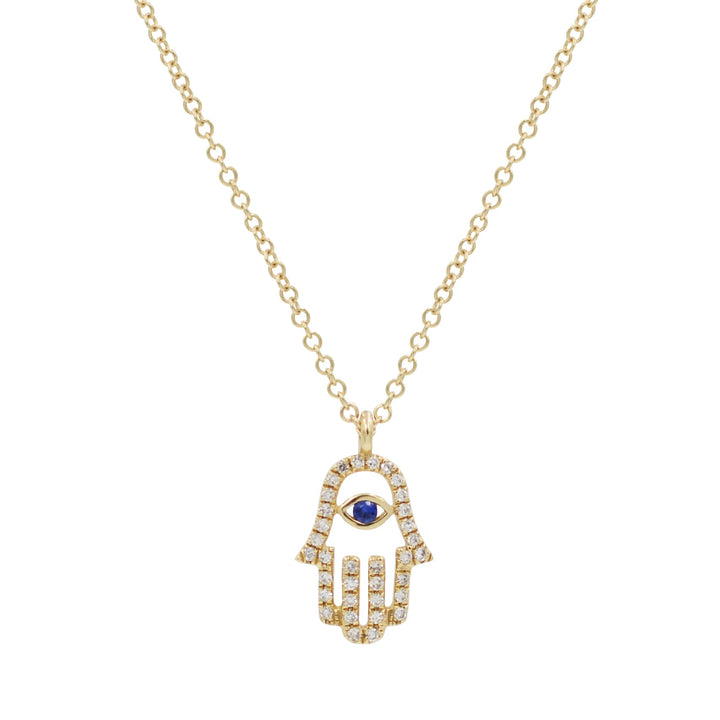 Diamond Hamsa Hand Necklace With Blue Sapphire