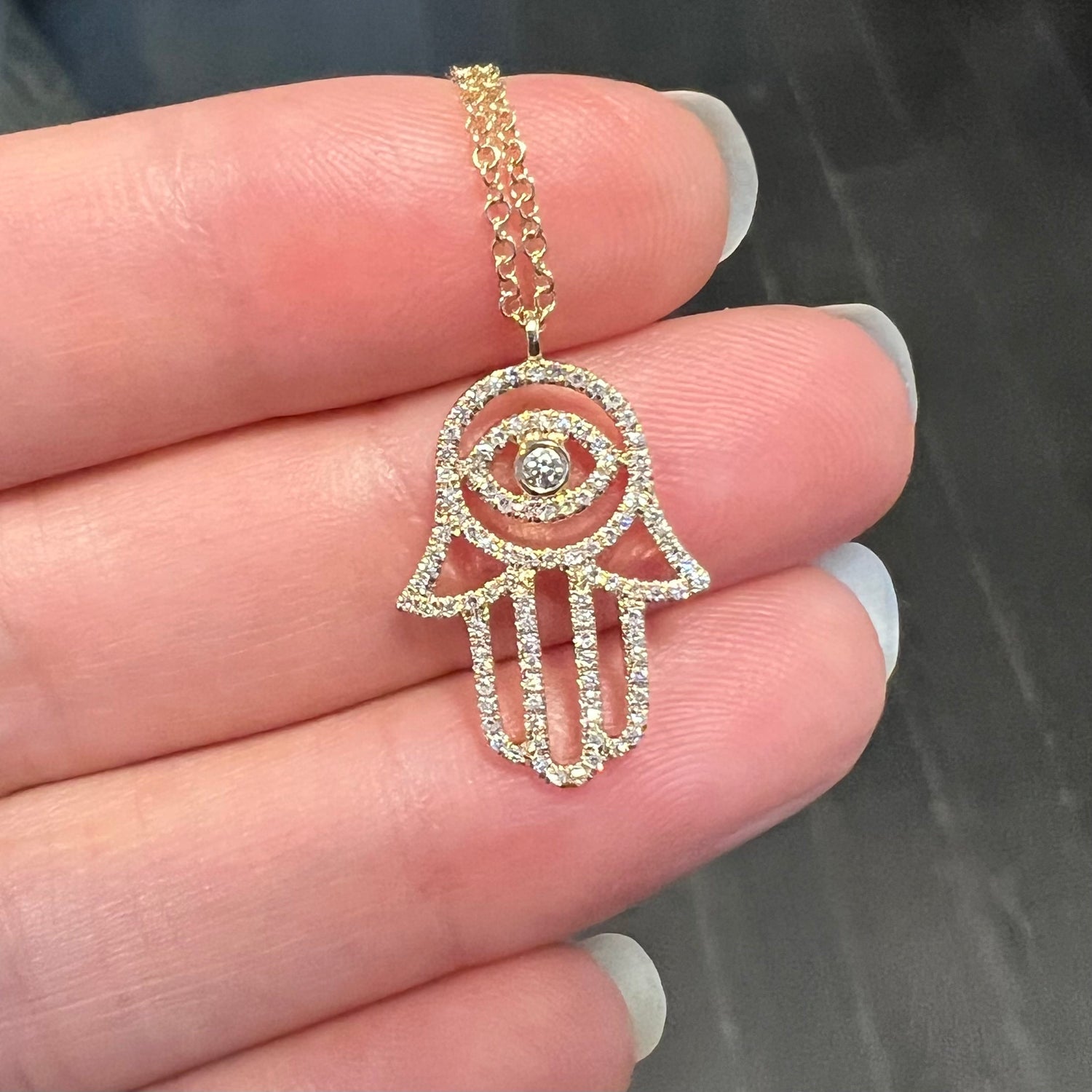 Large Hamsa Hand Necklace With Diamonds