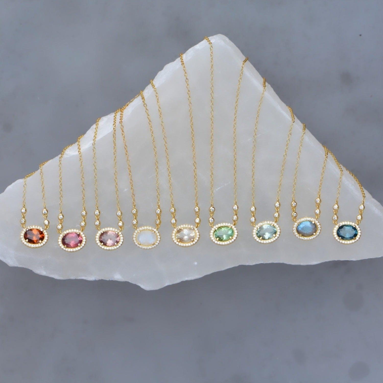 This Aura Tourmaline Drop Necklace by Kamaria is a unique and radical piece that is sure to stand out. The genuine green tourmaline is said to bring calmness, meditation, and wisdom, making this necklace not just a fashion statement but also a source of positive energy. It is perfect for wearing on its own or layering with other delicate chains for a more personalized look.