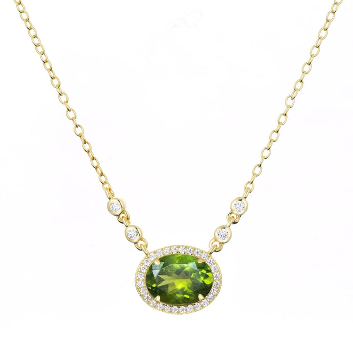 This necklace is made with gold-plated sterling silver, features a genuine green tourmaline drop, and has crystal accents.