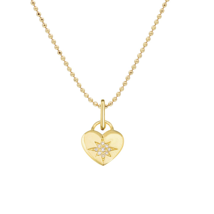 Heart North Star Necklace With Diamonds On 14K Ball Chain