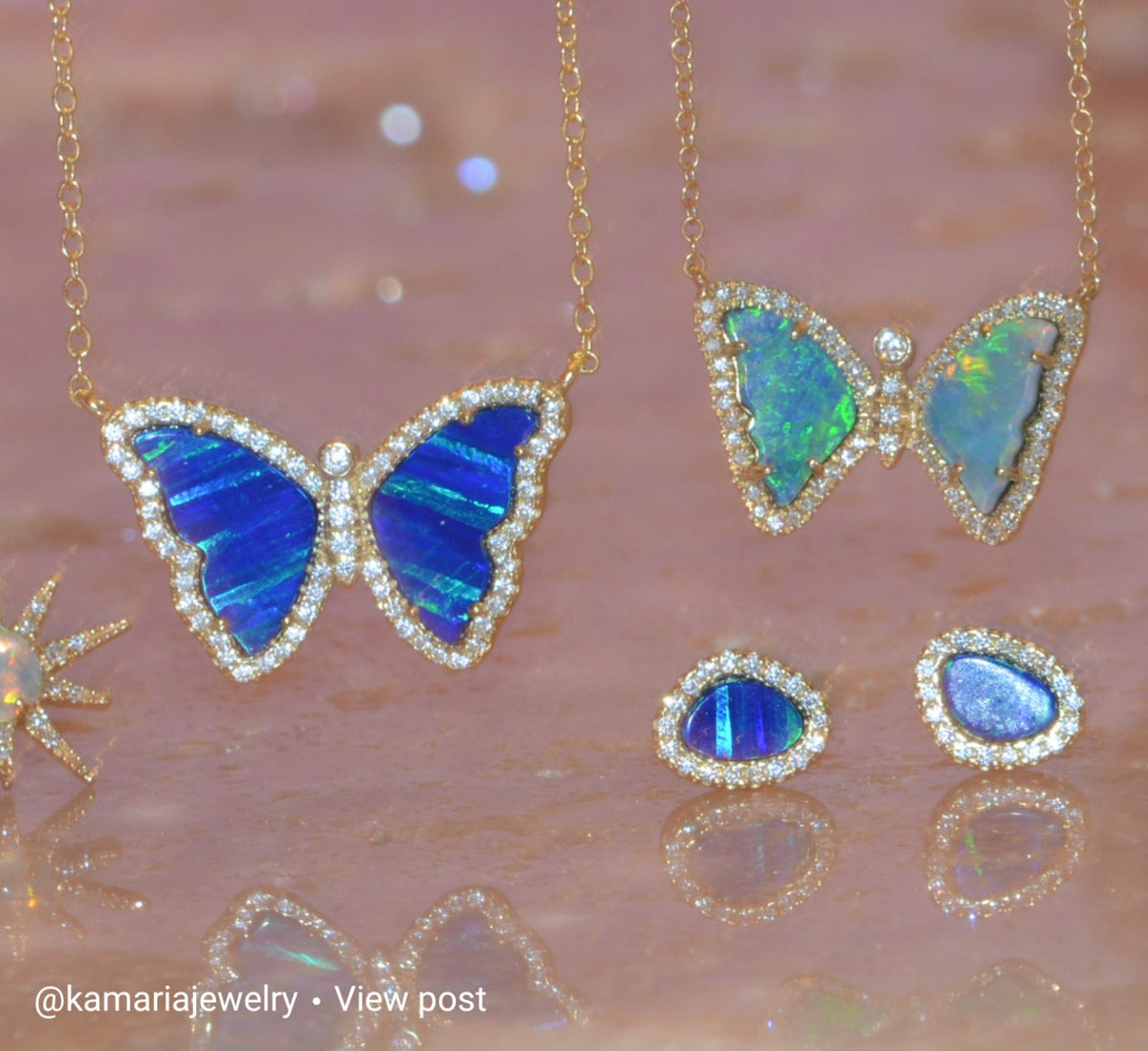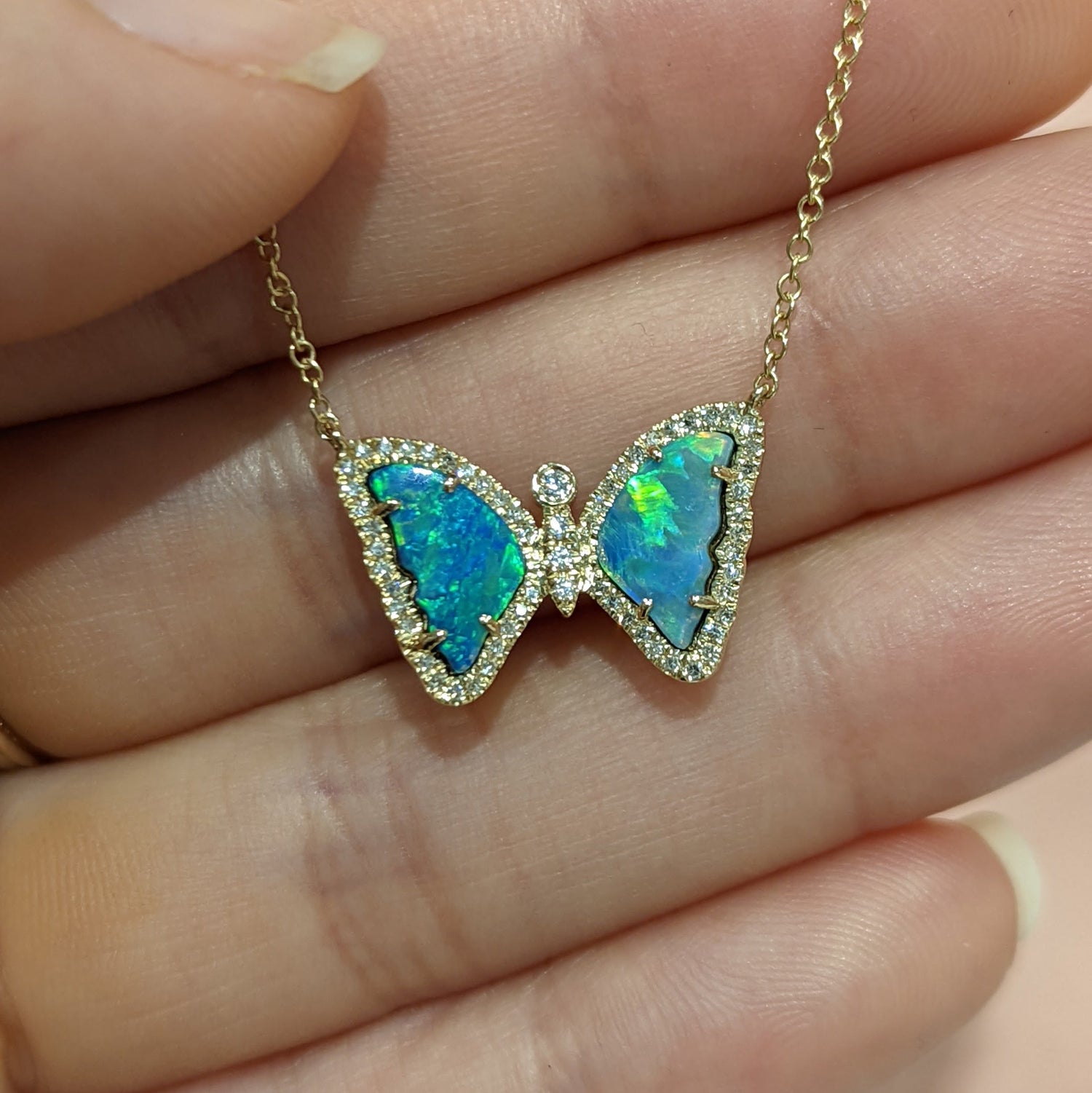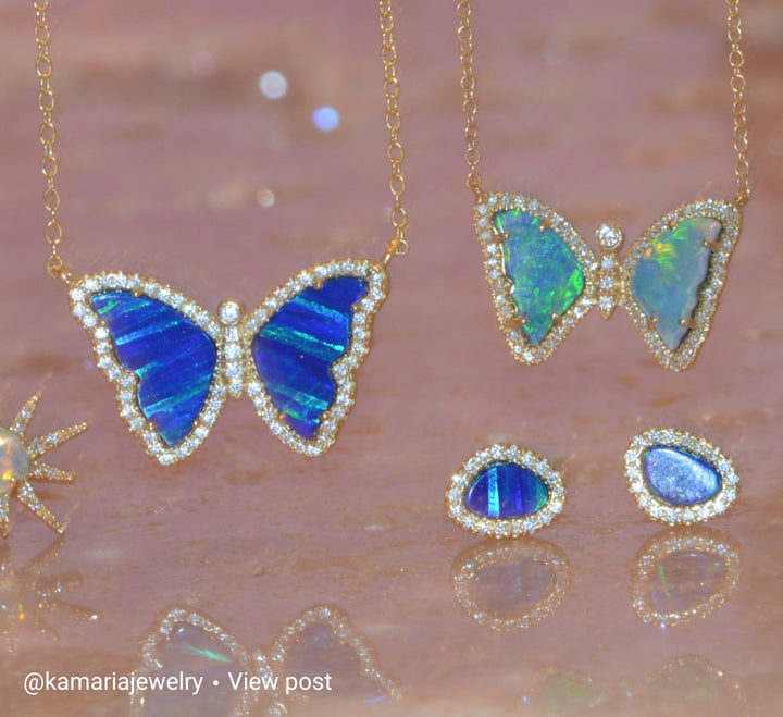 Mini Opal Butterfly Necklace With Diamonds