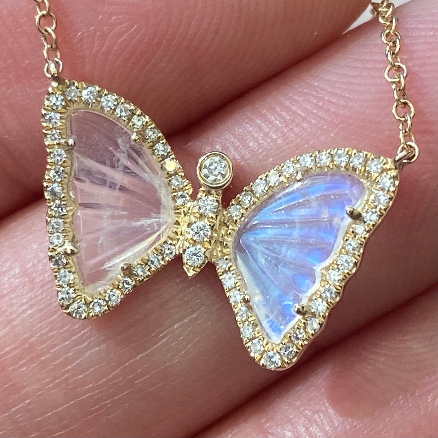 Mini Moonstone Butterfly Necklace With Diamonds