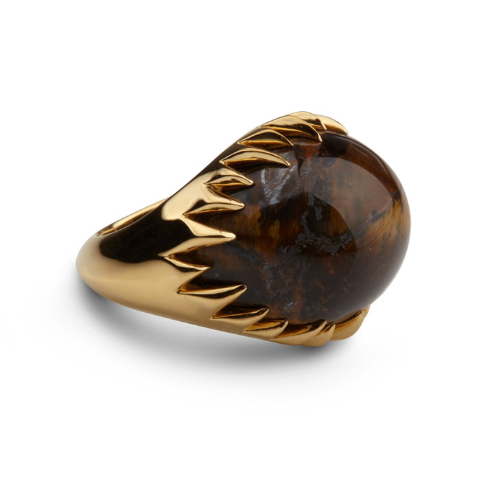 This Eye Of Poseidon Ring Gold & Tigers Eye by Kasun is a chunky ring inspired by the 'God of the Sea' Poseidon. The eye is made of tiger eye and is symbolic of protection. Crafted from sterling silver with 18ct yellow gold vermeil, this ring is a unique and meaningful statement piece.