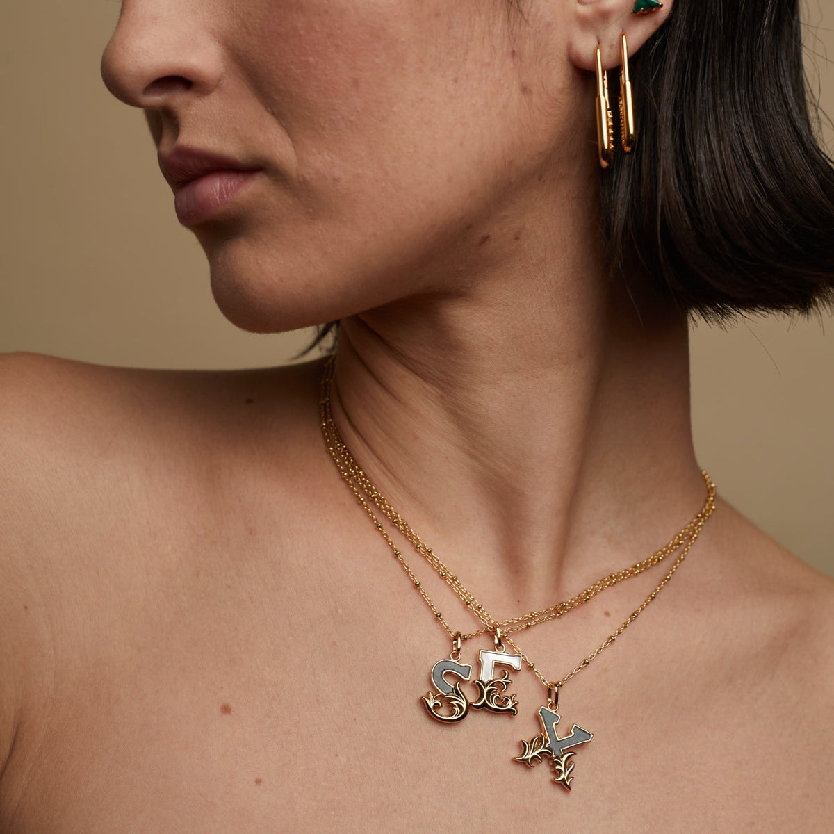 This & – Silver With Green Marble by Kasun is a subtle way to spell out a message with your jewelry. You can wear your own initials, a VIP's initial, or a random mix of your family's or best pal's initials. Inspired by vintage advertising fonts, this necklace is a beautiful and thoughtful gift for a loved one.