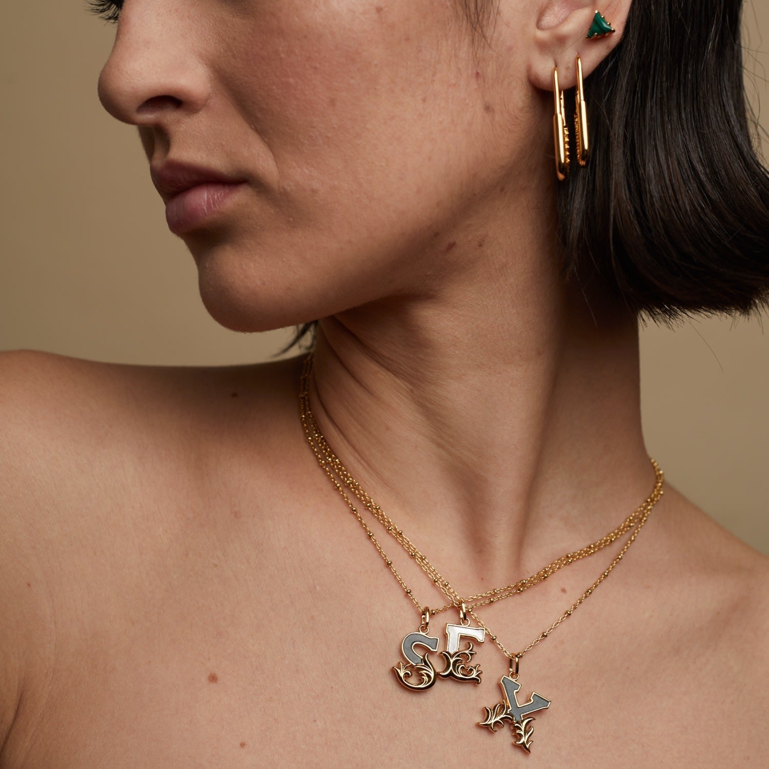 This Gold Plated B Initial Necklace With Mother Of Pearl by Kasun is a subtle way to personalize your jewelry. The pendant features the initial "B" with a mother of pearl embellishment, inspired by vintage advertising fonts. This necklace is designed to signify growth, change, and positivity, making it a great gift for yourself or for loved ones.
