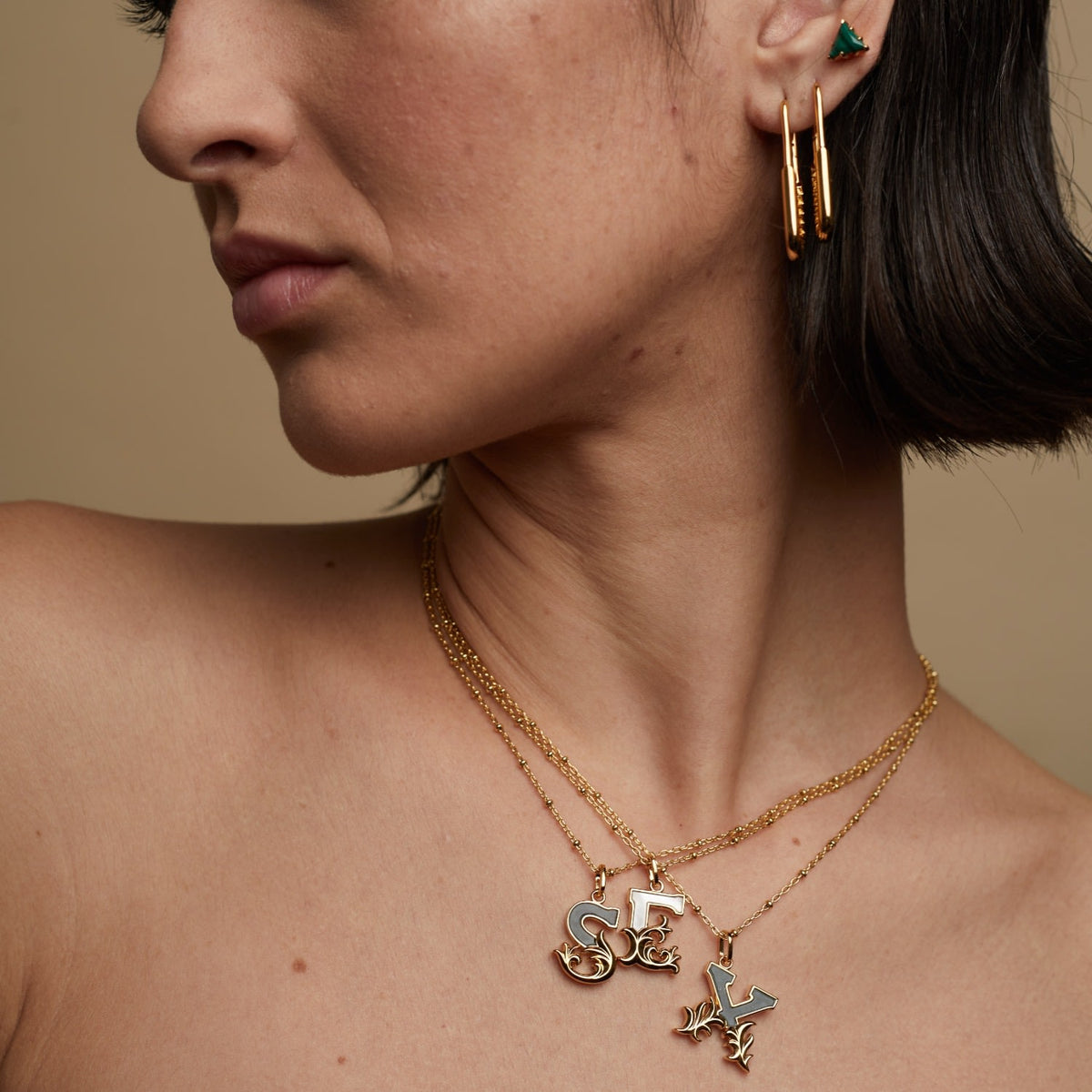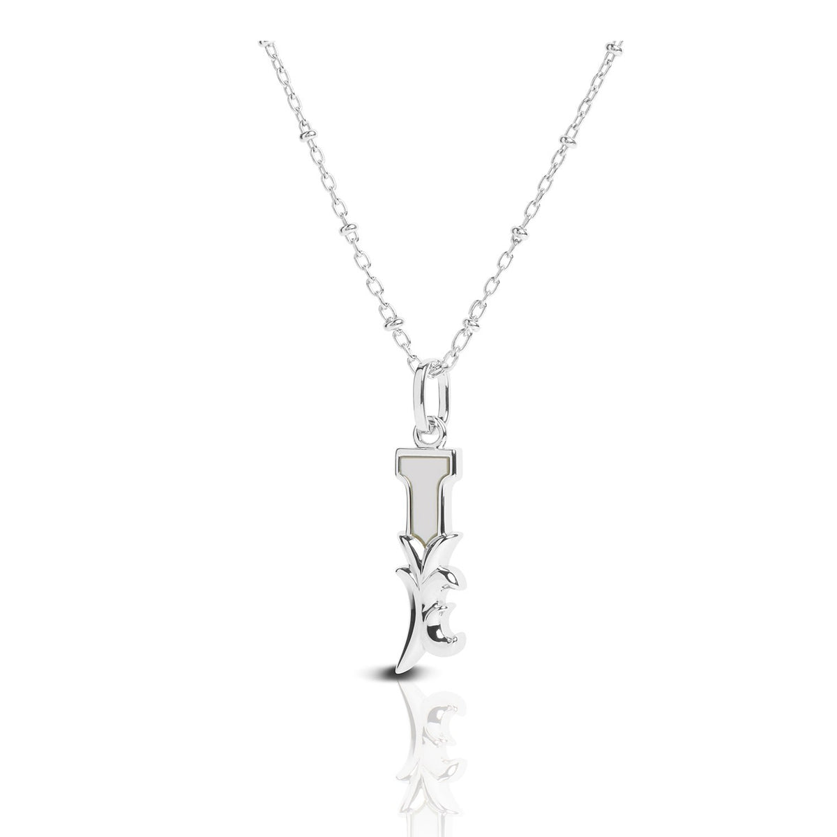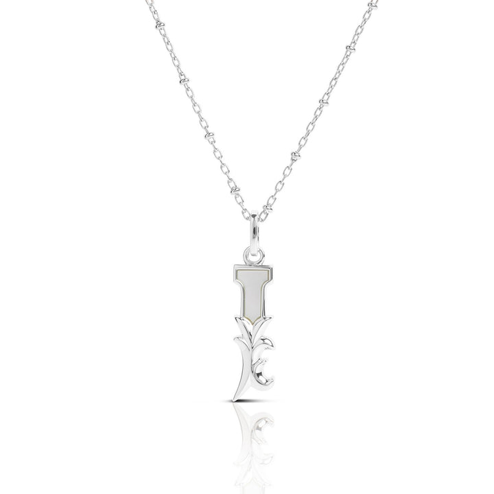 This Solid Silver I Initial Necklace With Mother Of Pearl by Kasun is a subtle way to personalize your jewelry. The pendant features the initial "I" with a mother of pearl embellishment, inspired by vintage advertising fonts. This necklace is designed to signify growth, change, and positivity, making it a great gift for yourself or for loved ones.