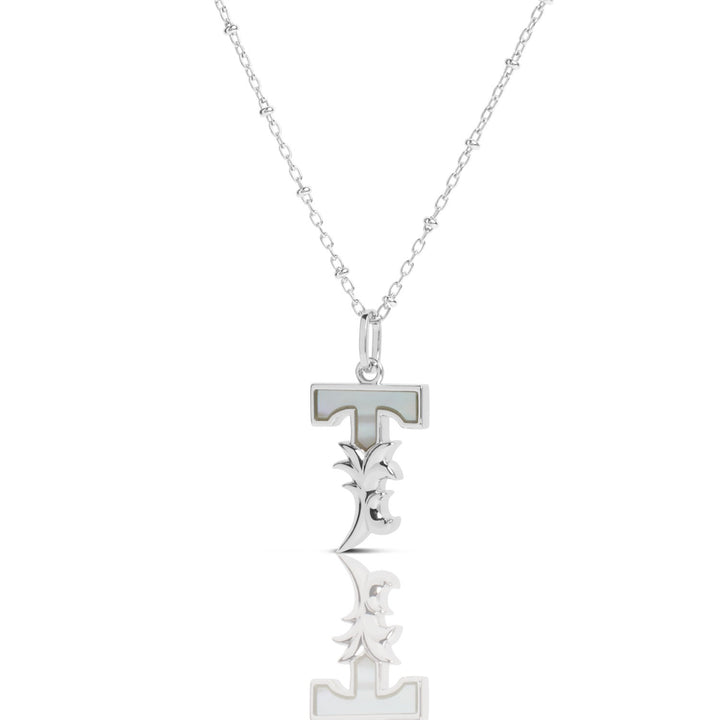 Solid Silver T Initial Necklace With Mother Of Pearl