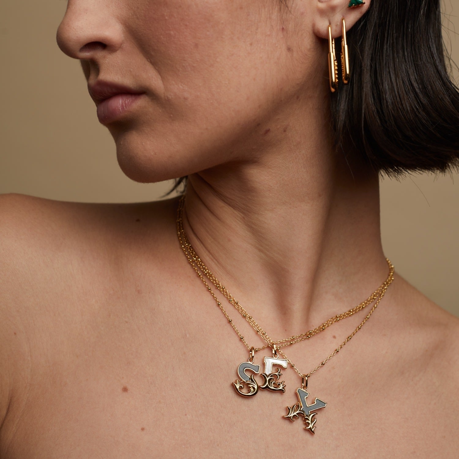 This Solid Silver Z Initial Necklace With Mother Of Pearl by Kasun is a subtle way to personalize your jewelry. The pendant features the initial "Z" with a mother of pearl embellishment, inspired by vintage advertising fonts. This necklace is designed to signify growth, change, and positivity, making it a great gift for yourself or for loved ones.
