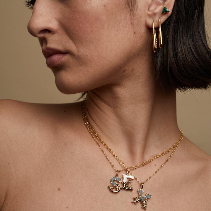 This Solid Silver W Initial Necklace With Mother Of Pearl by Kasun is a subtle way to personalize your jewelry. The pendant features the initial "W" with a mother of pearl embellishment, inspired by vintage advertising fonts. This necklace is designed to signify growth, change, and positivity, making it a great gift for yourself or for loved ones.
