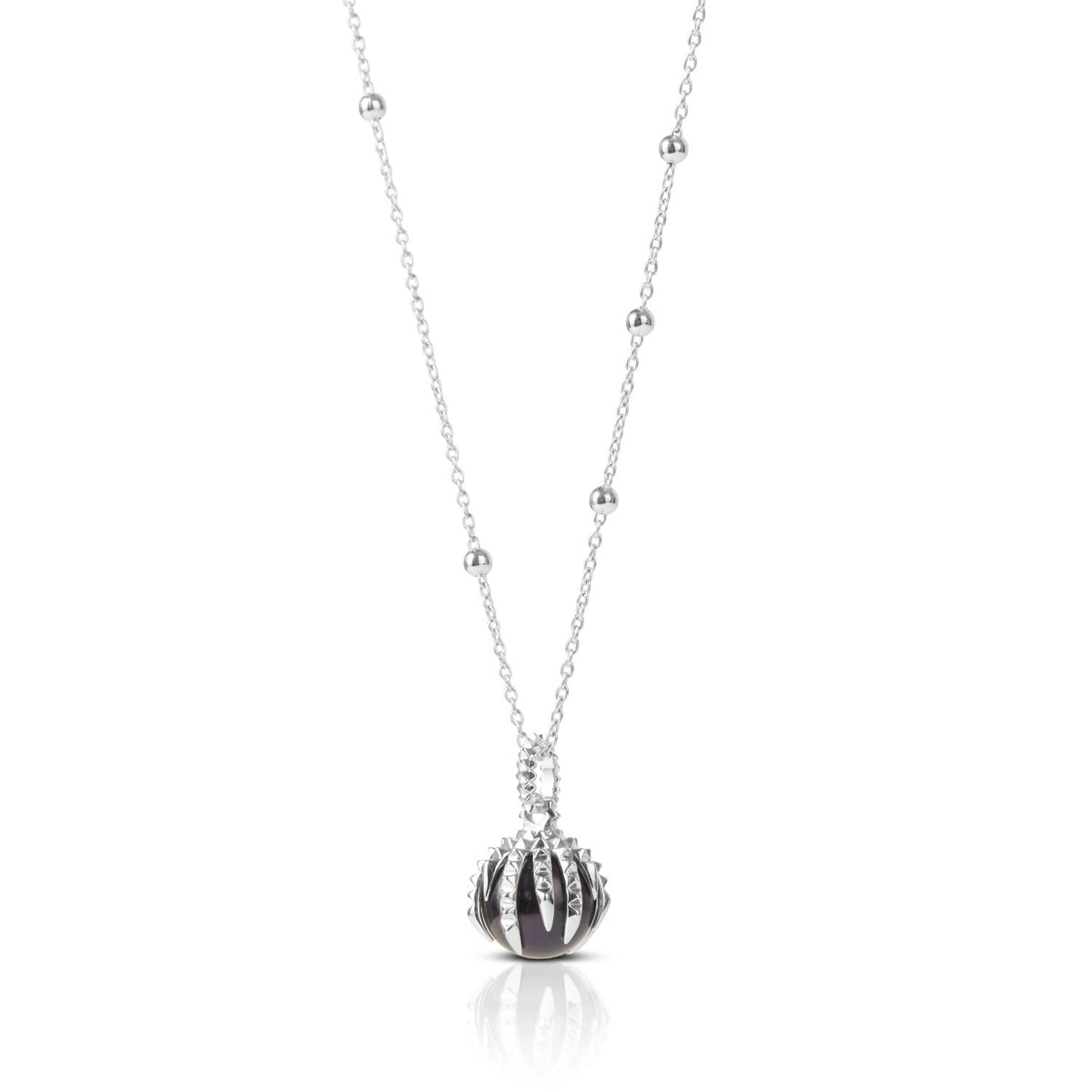 This necklace is crafted from 925 sterling silver with rhodium plating. It features a 10 mm peacock freshwater pearl and a chain length that can be adjusted to 450 mm, 550 mm, or 600 mm with a lobster clasp.