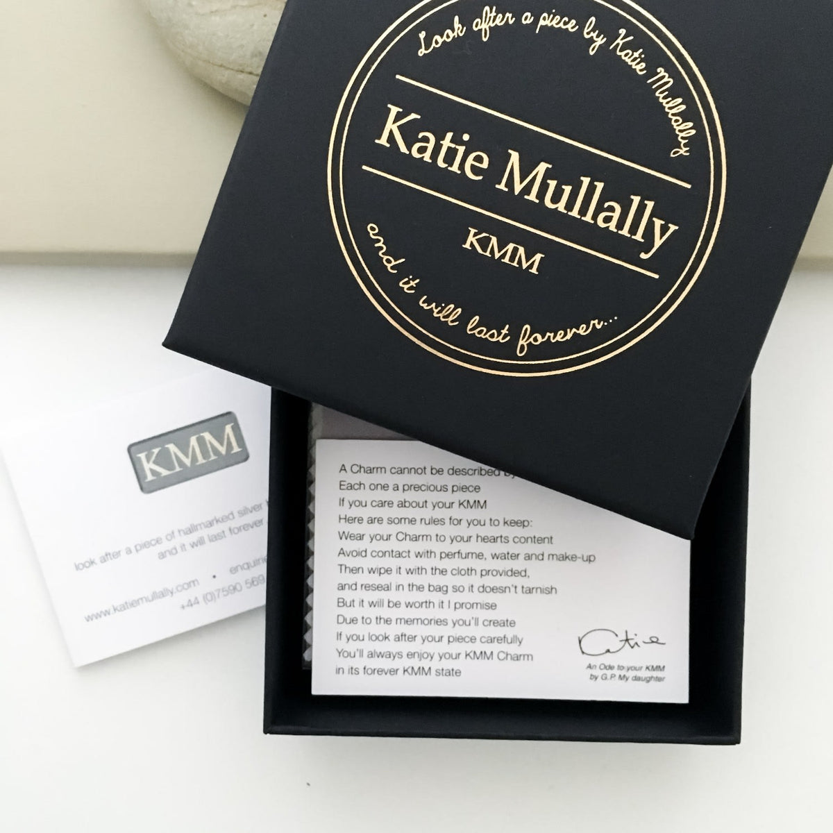 Katie Mullally is a London-based jewelry brand founded by designer Katie Mullally. Celebrated for her distinctive charm necklaces, the brand combines vintage inspiration with a modern sensibility. Each piece is crafted in sterling silver, often plated in gold, and designed to be collected, layered, and personalized. The brand has become known for jewelry that is as meaningful as it is stylish.