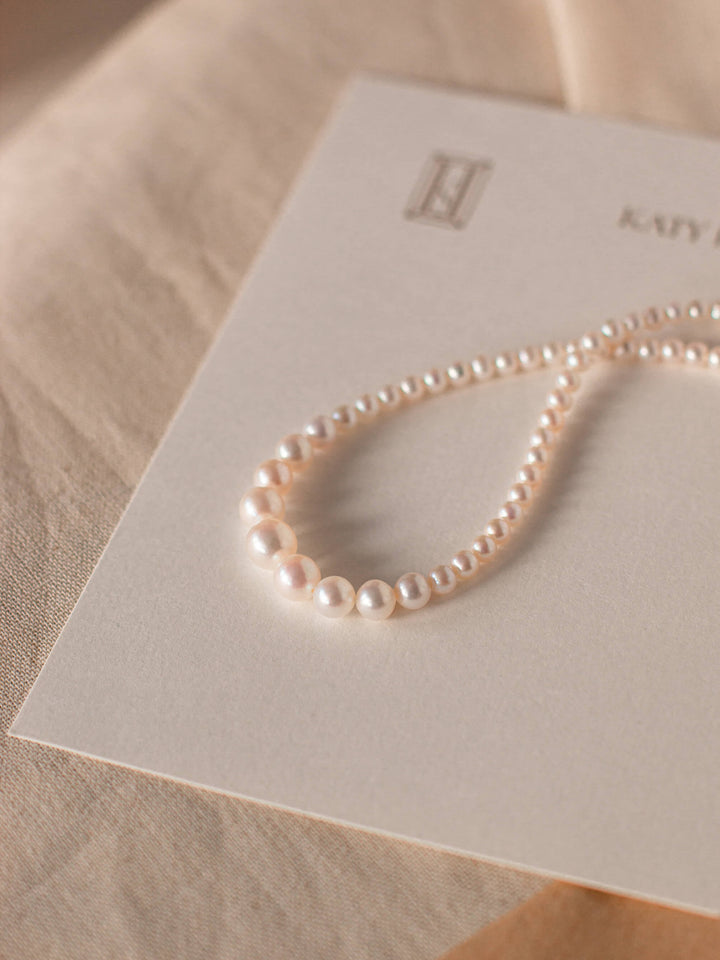 The Isabelle Pearl Necklace by Katy Faye is a sophisticated and timeless piece. Crafted with exquisite freshwater pearls in an elegant gradient design, this necklace is unlike any other. It’s a perfect gift or a special treat for oneself, packaged in a beautiful, reusable, and plastic-free box. This hypoallergenic necklace is a statement of classic beauty and modern elegance, perfect for both everyday wear and special occasions.