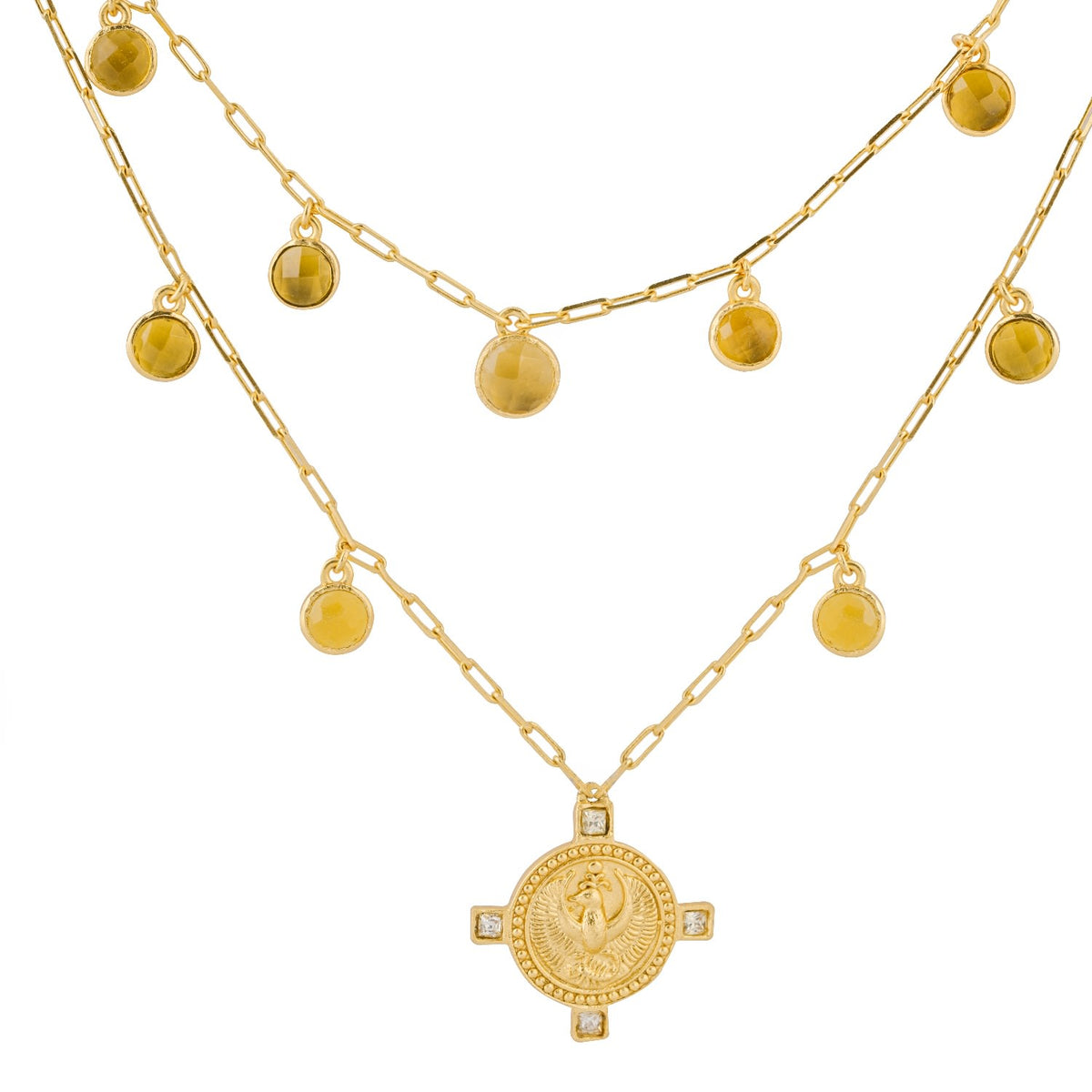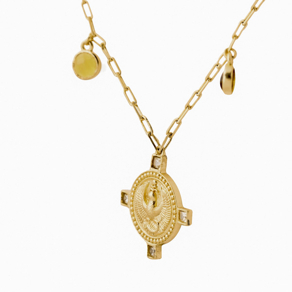 Materials: This amulet is made with 22K gold vermeil on a sterling silver base and features a citrine stone.