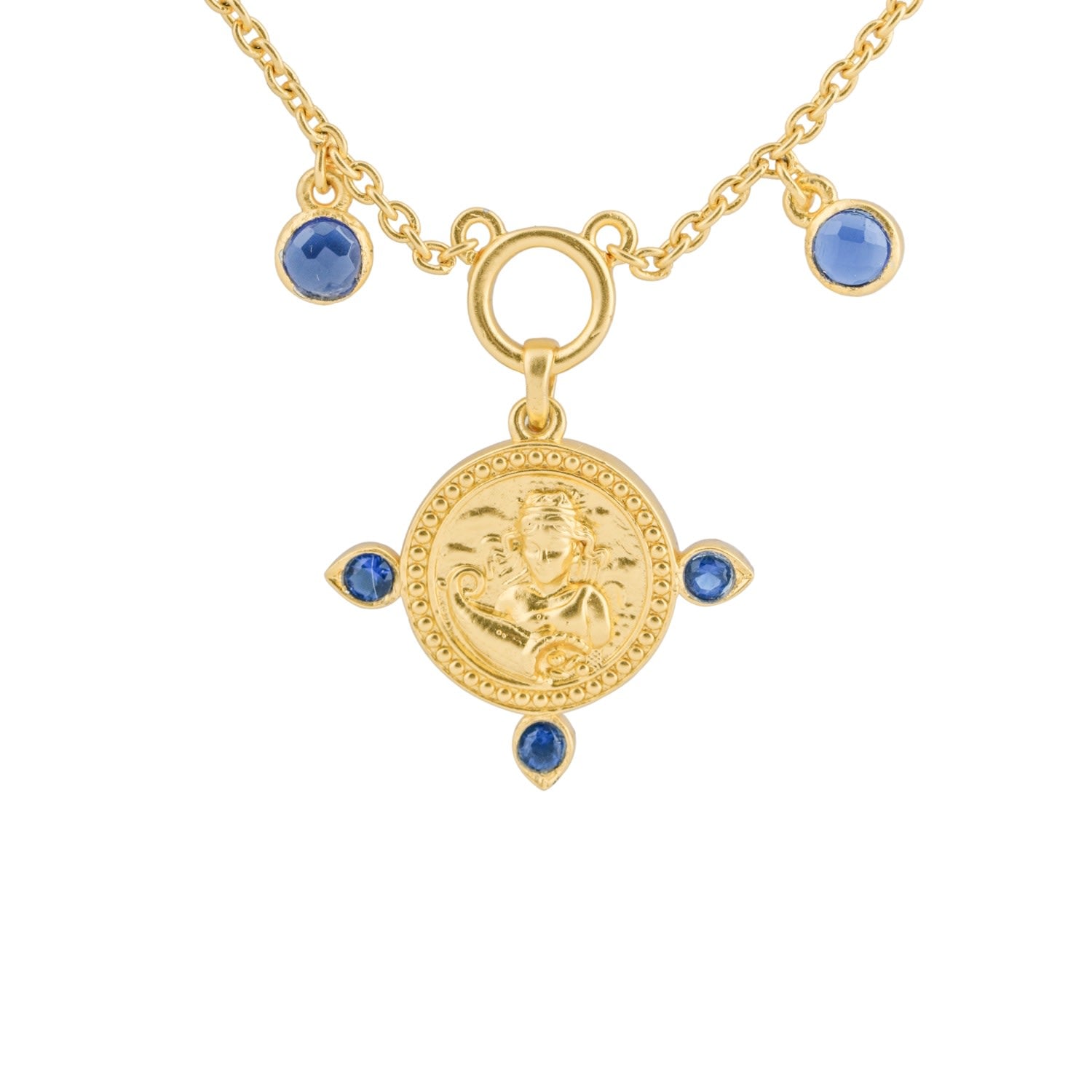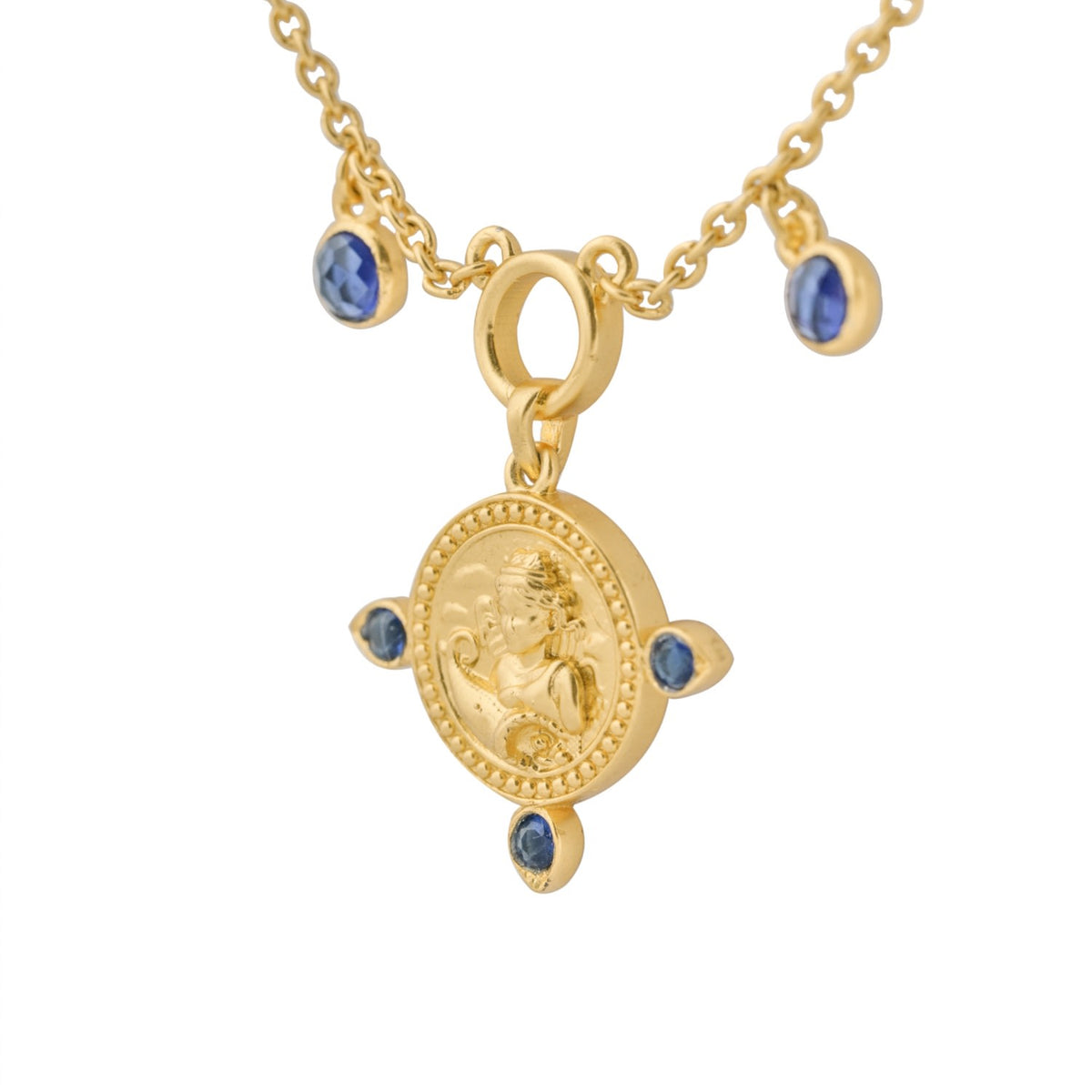 This The Virgo Zodiac Amulet Necklace In Gold by Kensho Heirlooms is a captivating and meaningful piece that honors the humble and perfect Virgo spirit. This amulet echoes the symbolism of the Virgo—a purveyor of truth and purity—and is adorned with the powerful blue sapphire, a gem cherished for its protective and wisdom-bestowing properties. This exquisite pendant is designed to inspire serenity and provide a profound connection to your astrological identity.