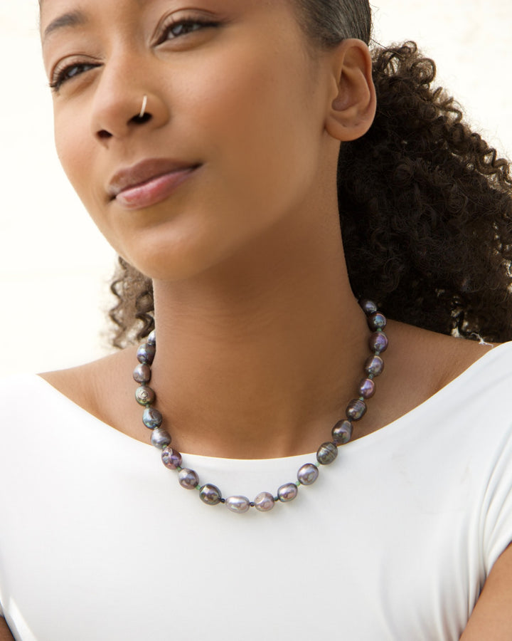 Palermo Necklace With Dark Baroque Pearls & Serpentine Accents