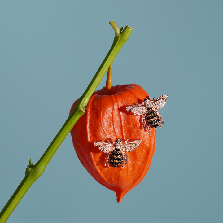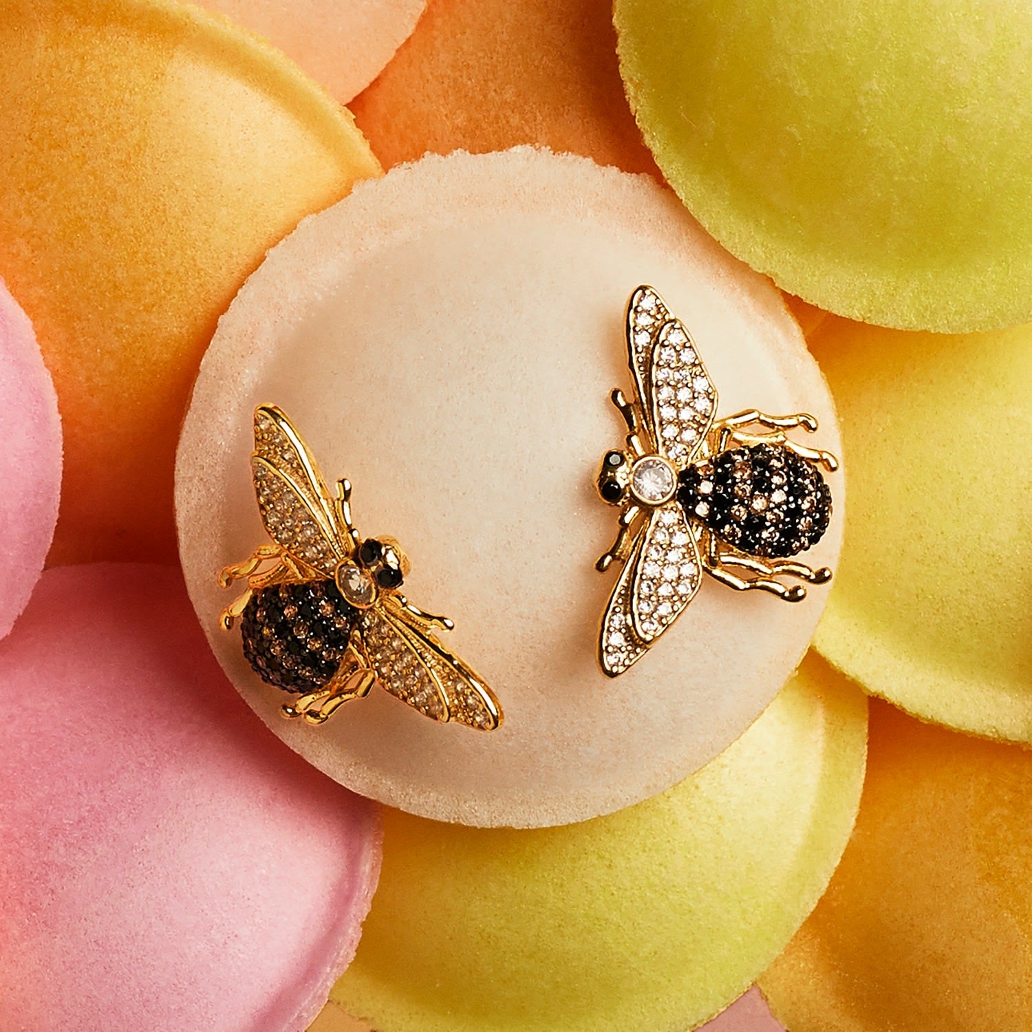 These Honey Bee Stud Earrings by Latelita are ideal for those who love delicate, colorful jewelry. Handcrafted in sterling silver with an 18ct gold dip, these playful honey bee studs are adorned with sparkling zircons. They are a charming and versatile accessory perfect for everyday wear.