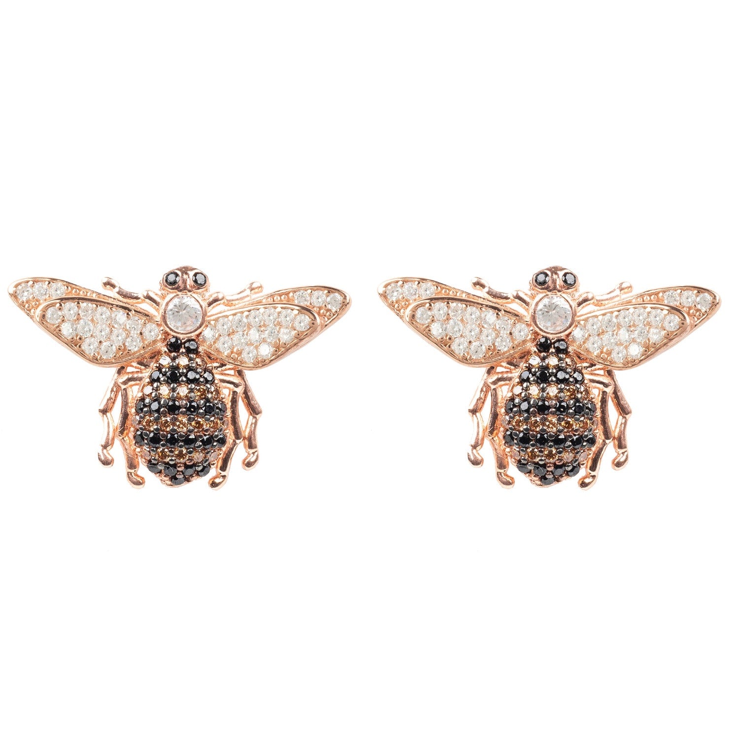 These Honey Bee Stud Earrings by Latelita are a playful and delicate accessory. Handcrafted from sterling silver with a rose gold dip, these little honey bee studs feature sparkling zircons. They are perfect for adding a touch of whimsical charm and sparkle to your everyday look, and can be paired with the matching necklace for a complete set.