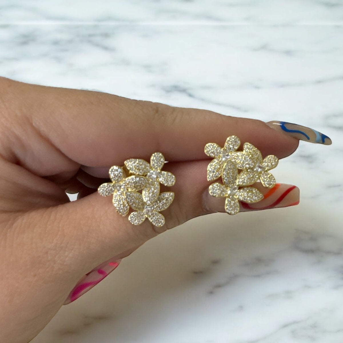 Flowers Large Stud Earrings Gold