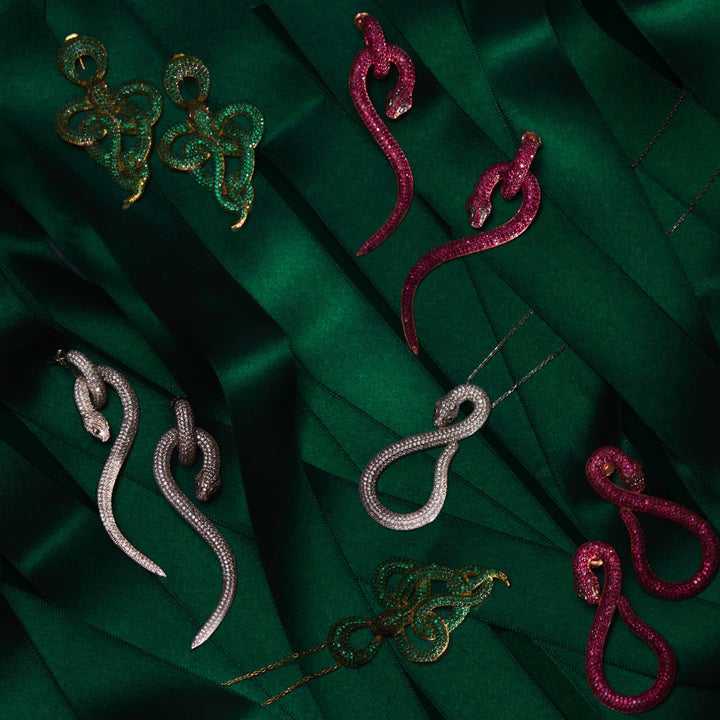 These Anaconda Snake Drop Earrings Silver White by Latelita are a bold and chic accessory. The earrings are inspired by snakes, which symbolize transformation and rebirth. They are enhanced with sparkling cubic zirconia, giving them an eye-catching shine. These earrings are perfect for a chic daytime look or evening elegance, making them a versatile statement piece for those who love animal-inspired jewelry.