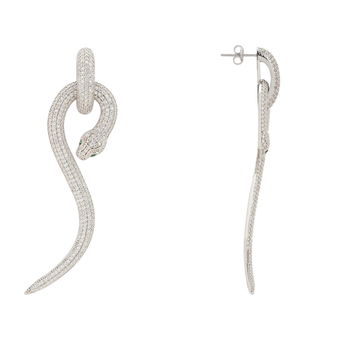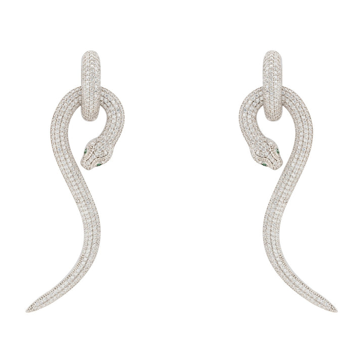 Anaconda Snake Drop Earrings Silver White