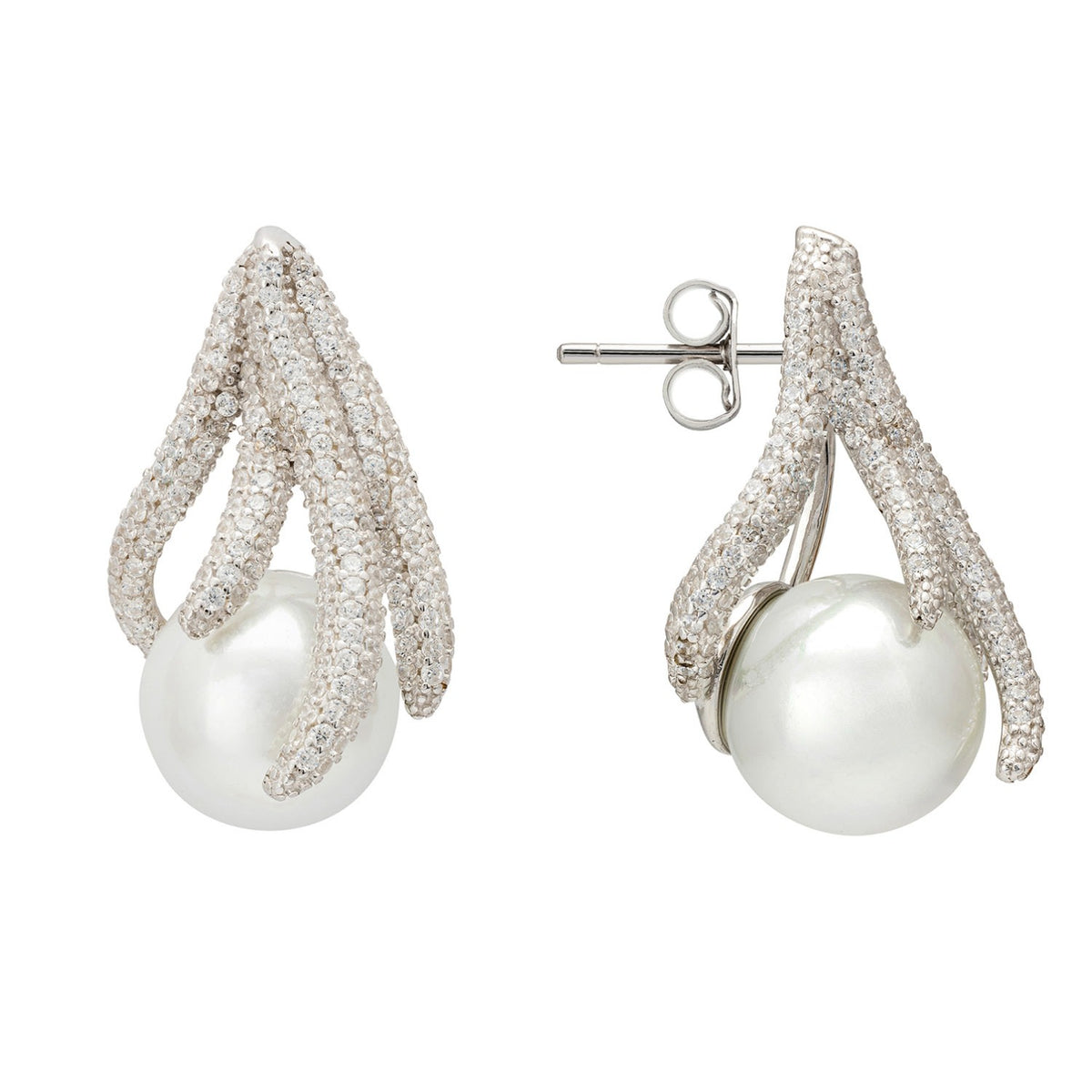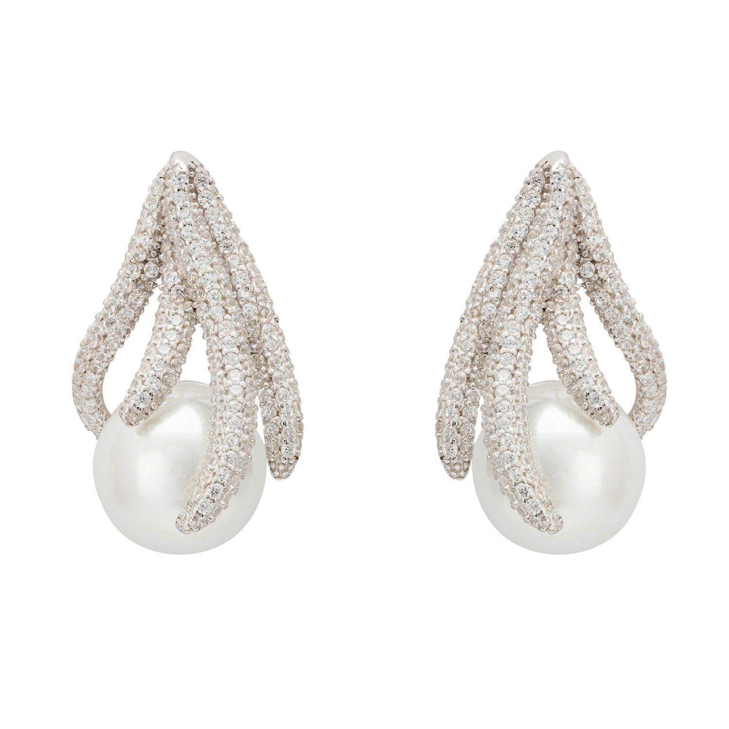 The Moonlit Embrace Pearl Earrings Silver by Latelita are a unique and artistic accessory. These earrings feature delicate cubic zirconia adorned tendrils that softly embrace a beautiful pearl. Handcrafted in 925 sterling silver, they are said to symbolize purity and innocence, making them a perfect gift for a June birthday or a special occasion.