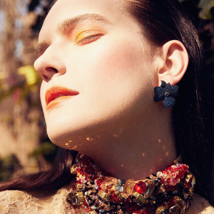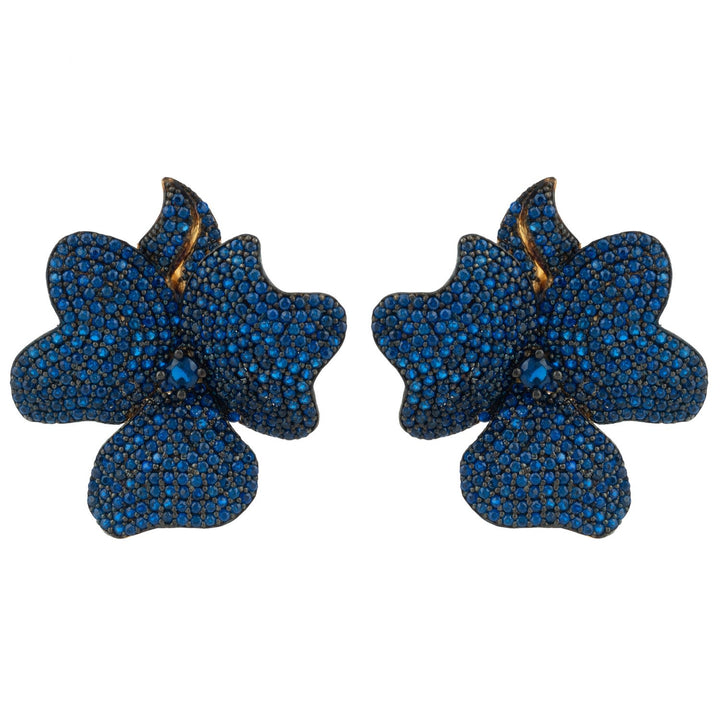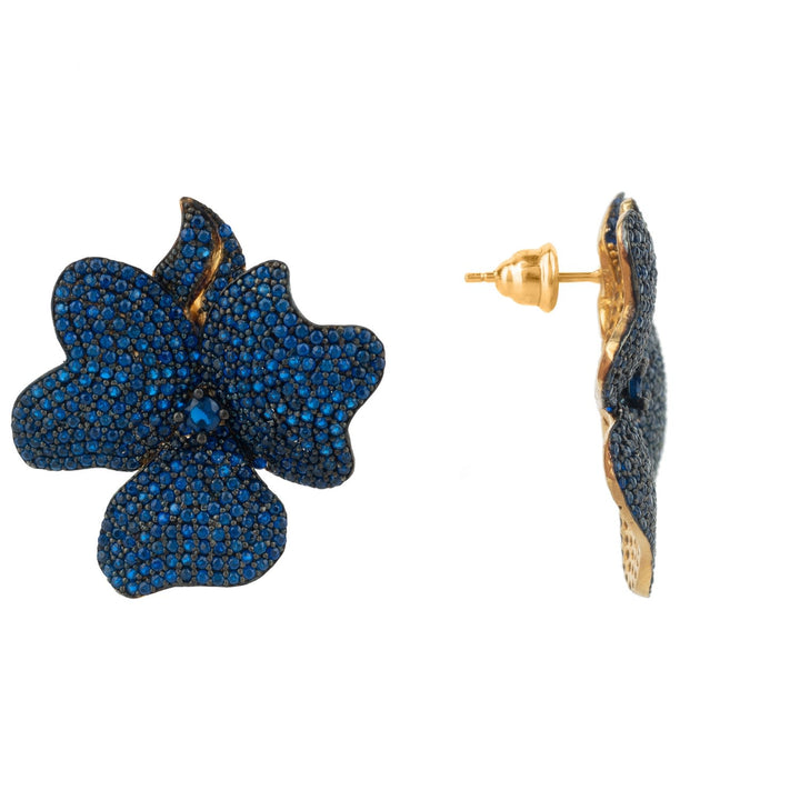 These Flower Large Stud Earrings Gold Sapphire Blue by Latelita are a timeless and elegant addition to any jewelry collection. The large floral design is adorned with sparkling sapphire blue cubic zirconia, creating a sophisticated look with an added pop of color. The oxidized details enhance the features, making these a perfect choice for statement jewelry lovers, ideal for evening wear, cocktail parties, or as bridal accessories.